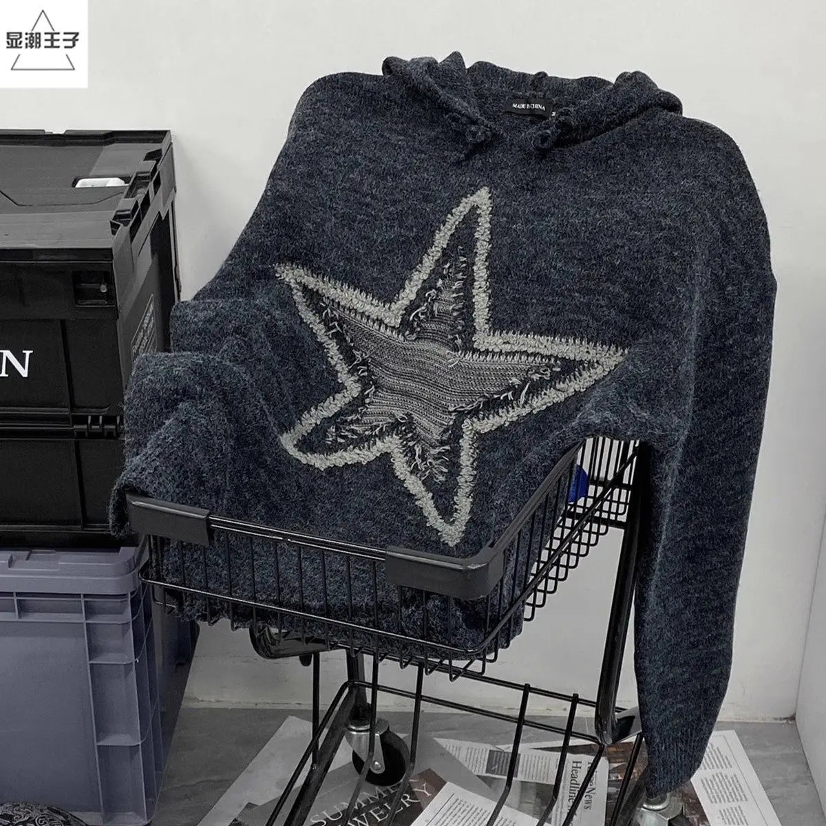 American High Street Retro Men and Women Rascal Handsome Hooded Knitted Sweater Couple Trendy Lazy Style Harajuku Top y2k