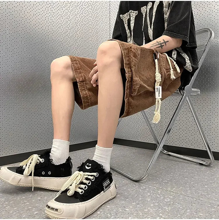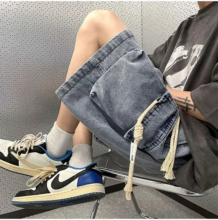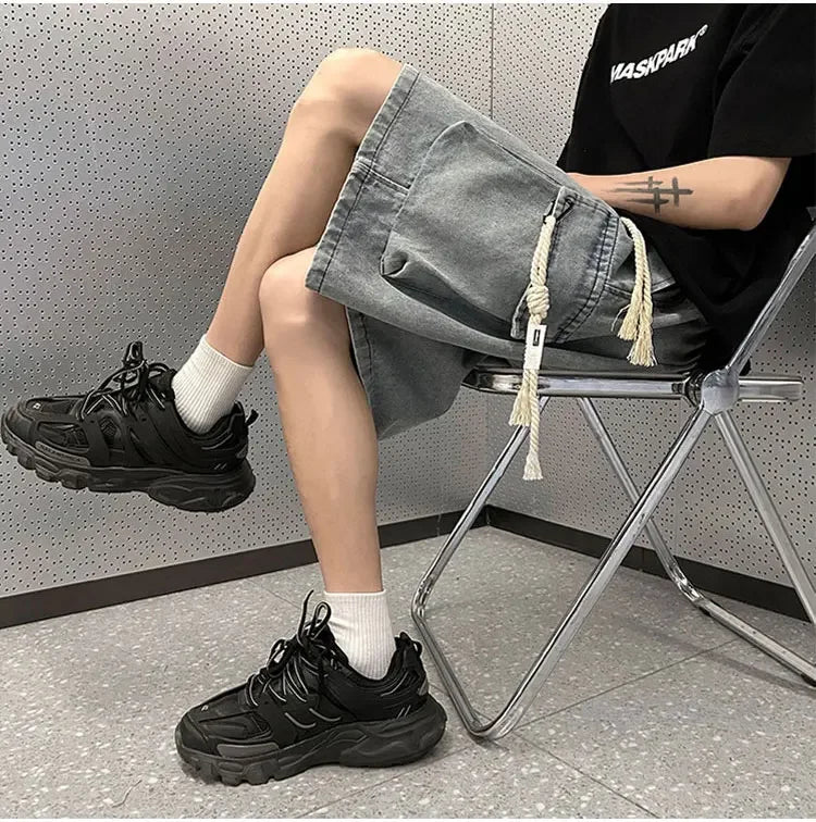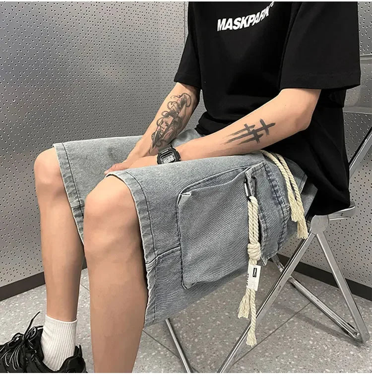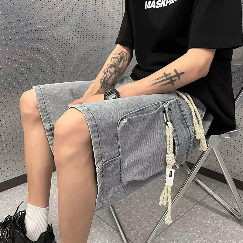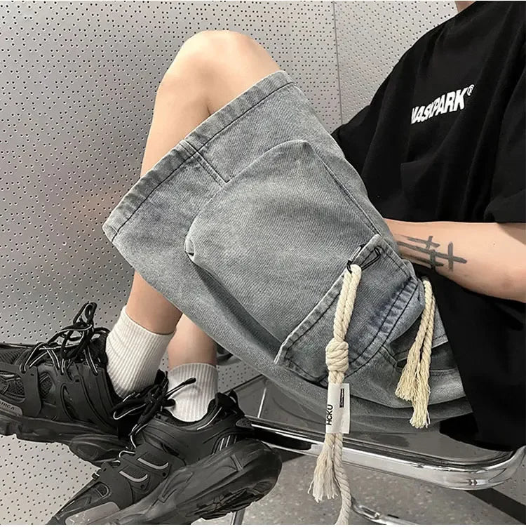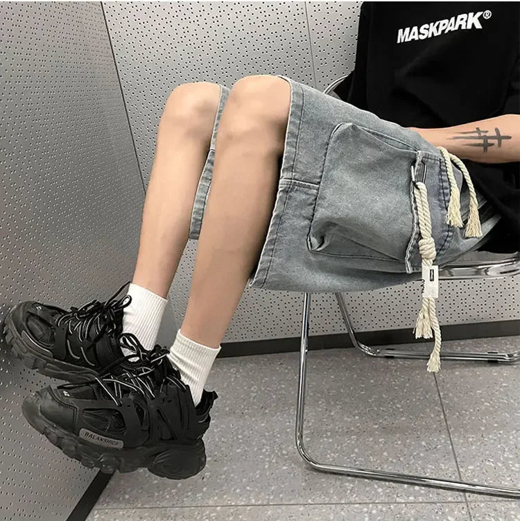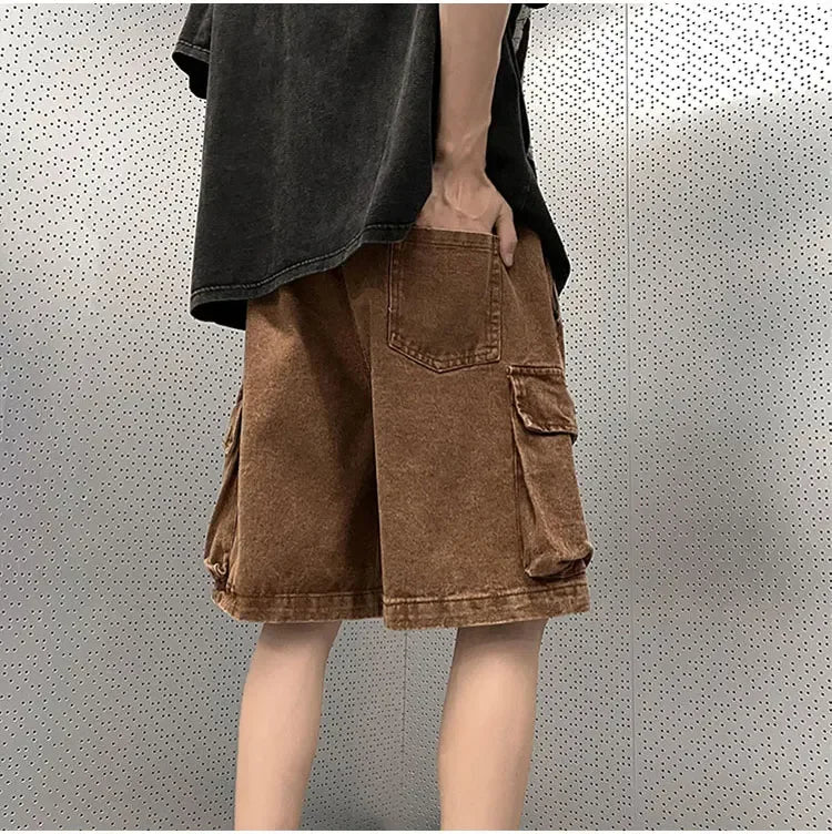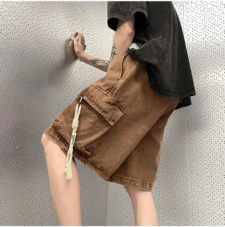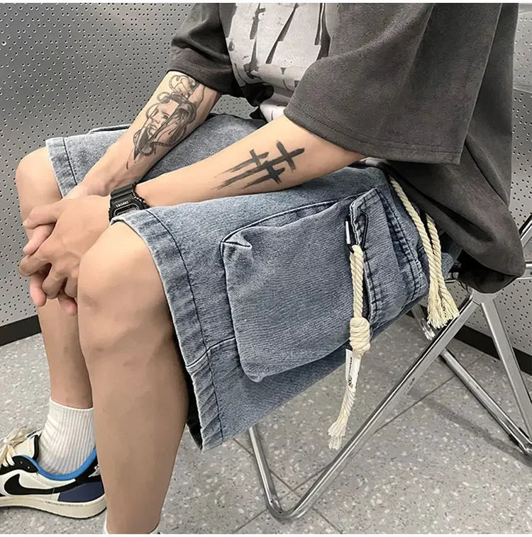 Cargo Shorts Men Denim Trousers Multi Pockets S-3XL Teens Hip Hop Washed Chic American Streetwear Fashion Elastic Waist Vintage