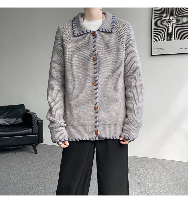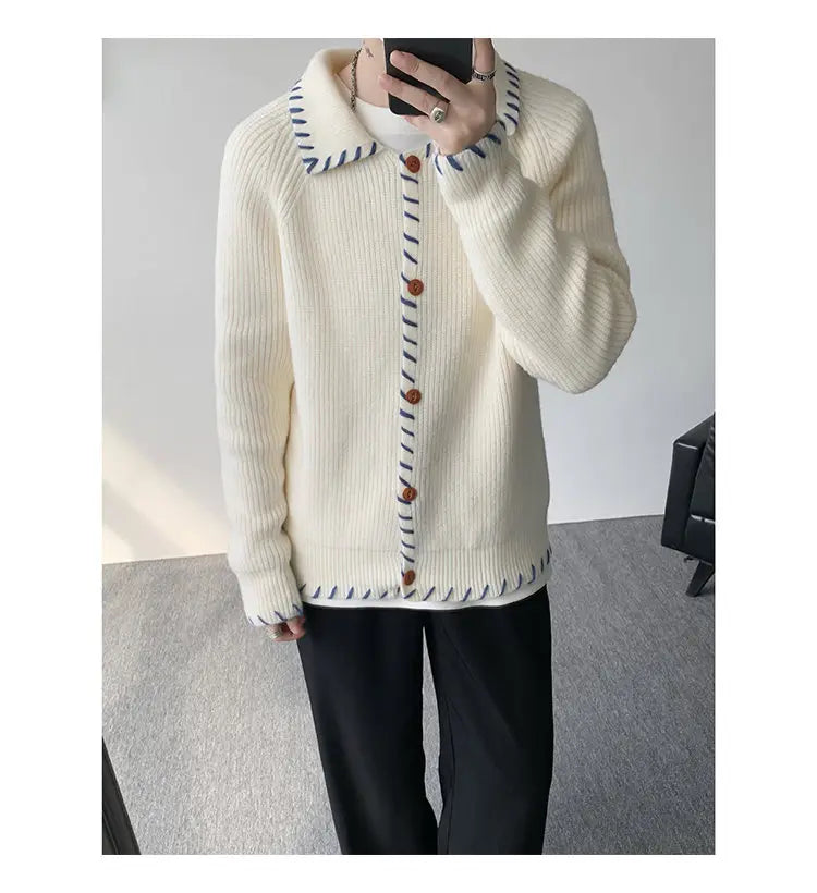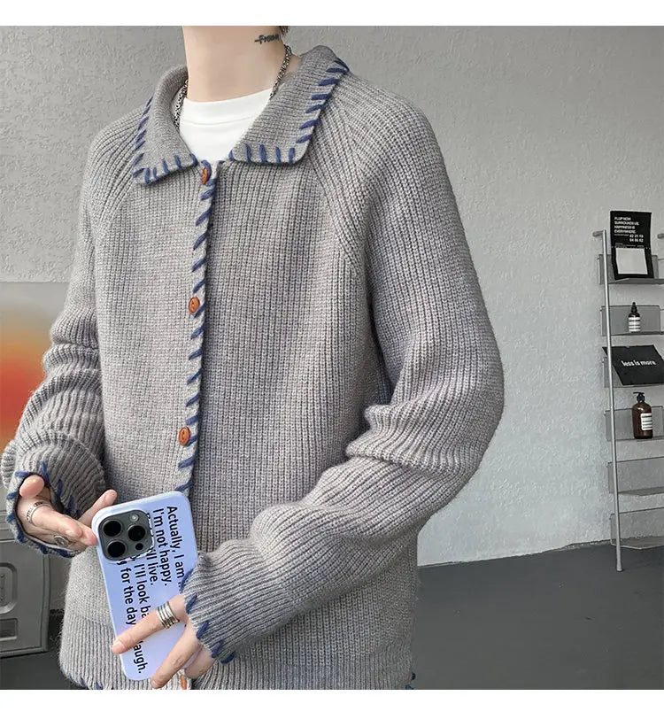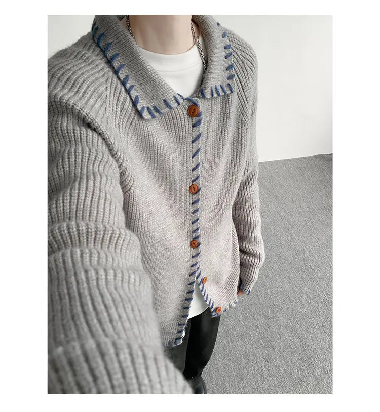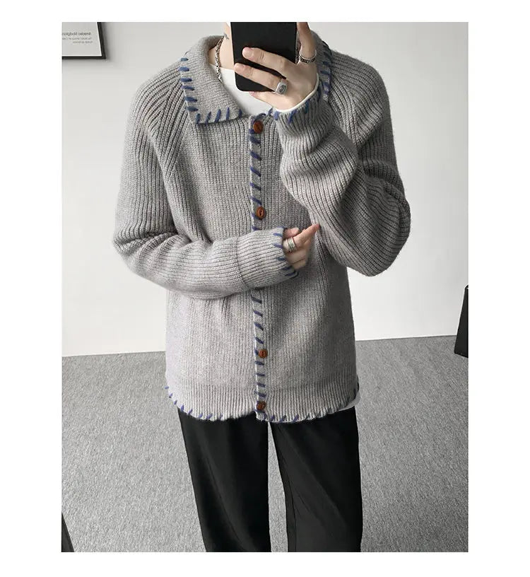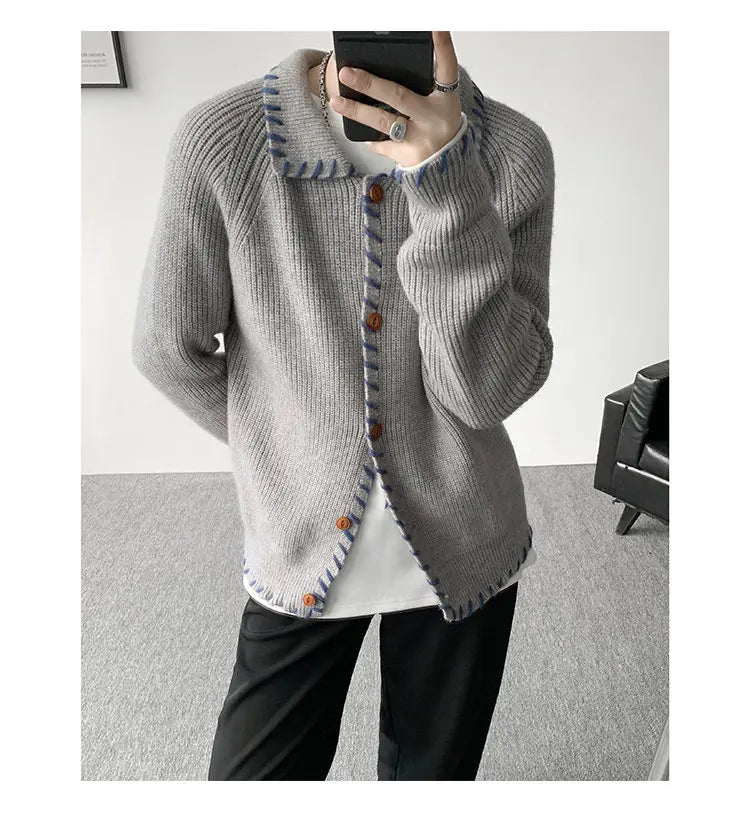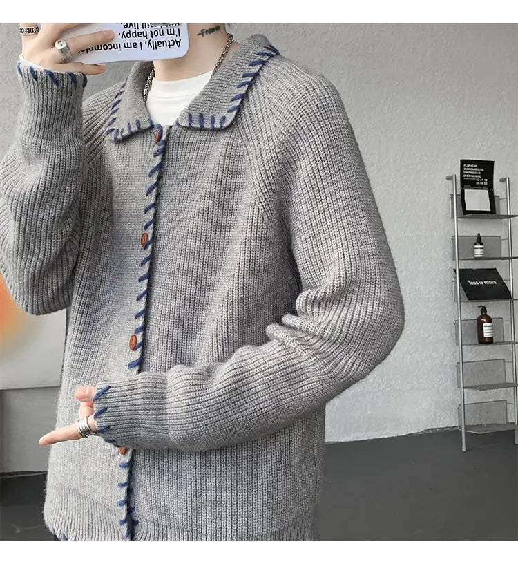 Casual collar knitted sweater men 2025 Winter Newly designed cardigan sweater Daily casual sweater jacket fashion Korean men's