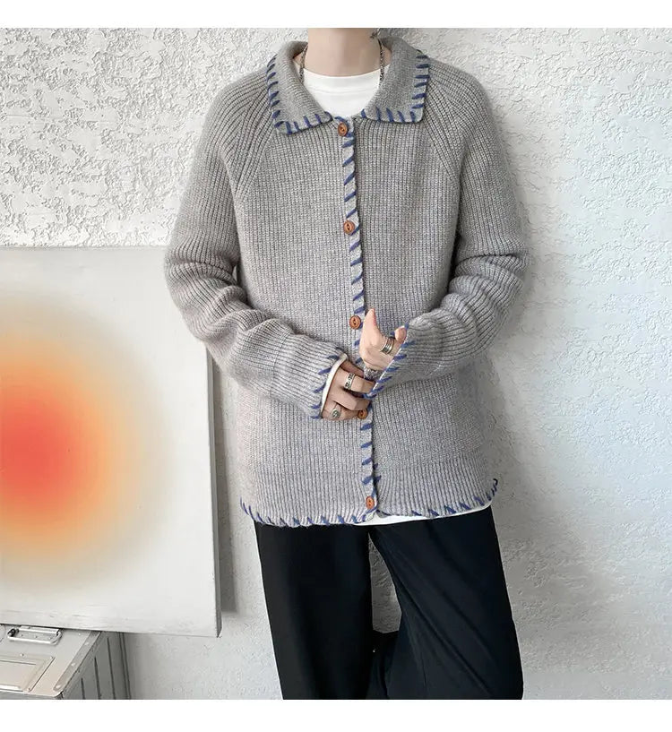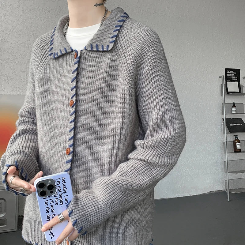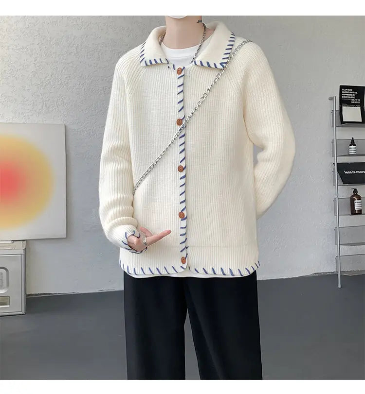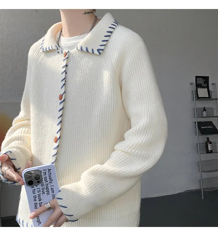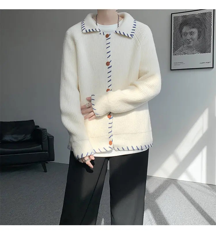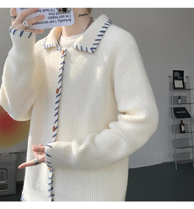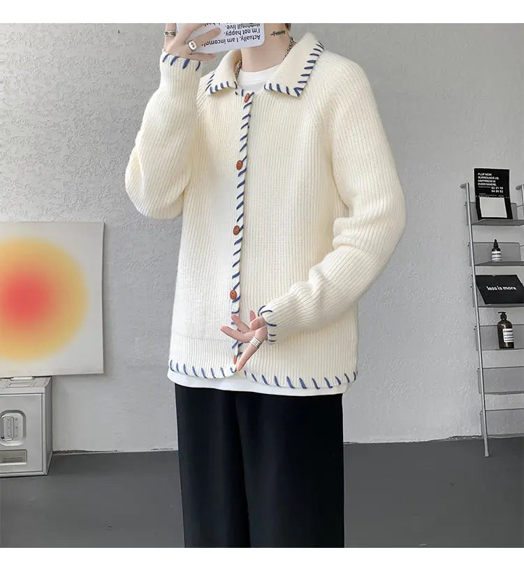 Casual collar knitted sweater men 2025 Winter Newly designed cardigan sweater Daily casual sweater jacket fashion Korean men's