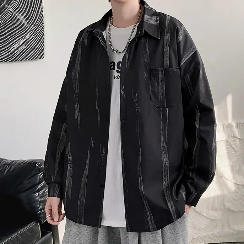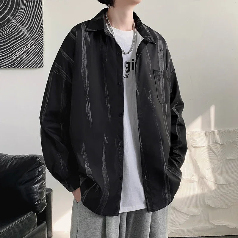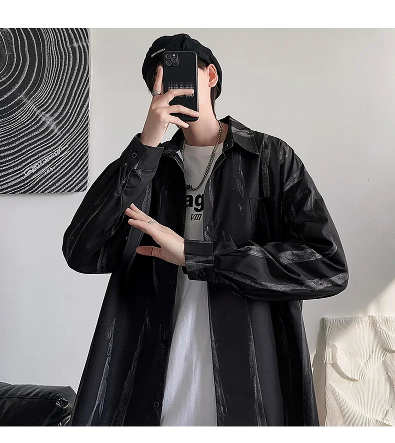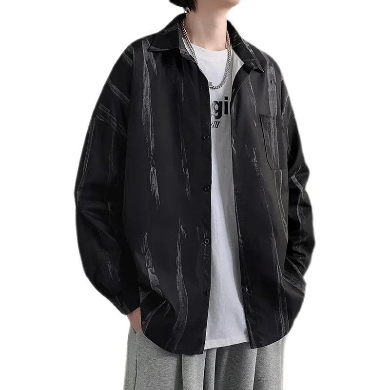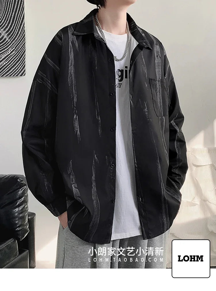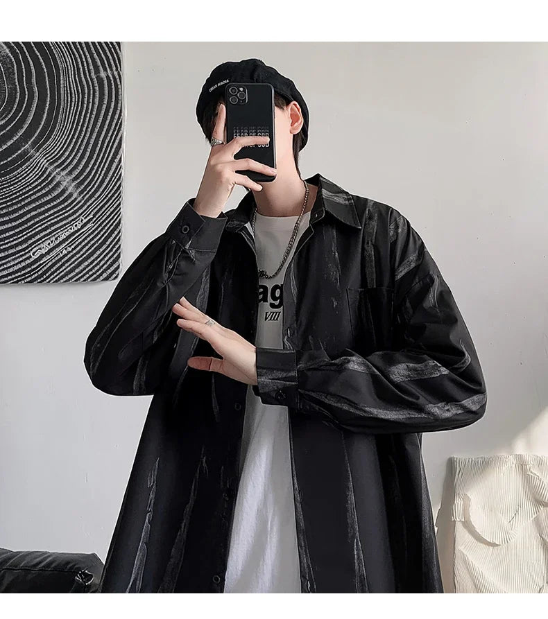 Casual Shirts Men All-match Tie-dye Spring Autumn BF Long Sleeve Tops Teens Fashion Harajuku Chic Coats Camisas Hombre Newly Ins