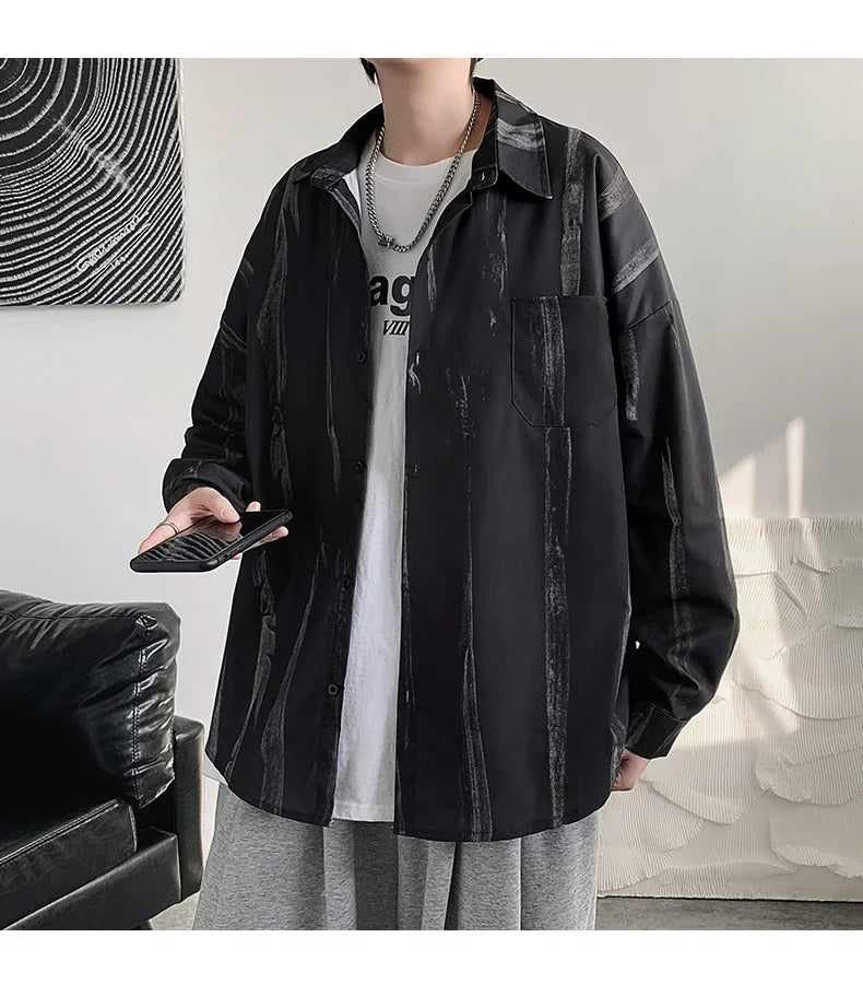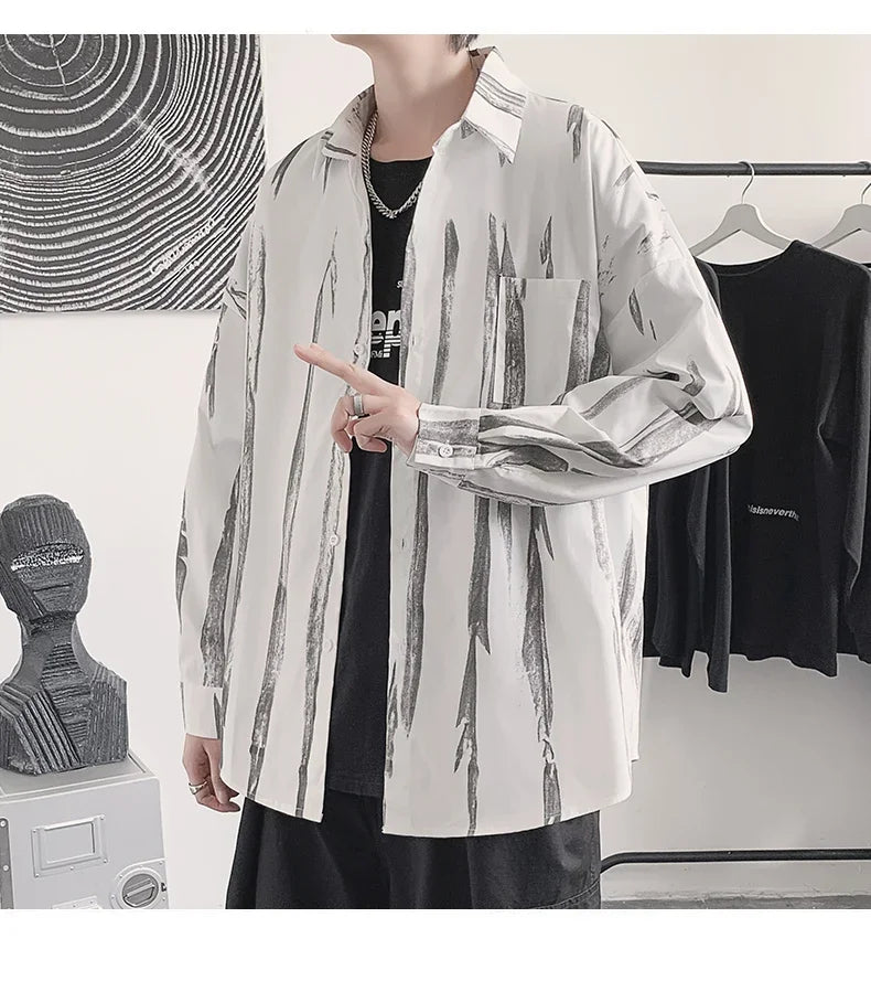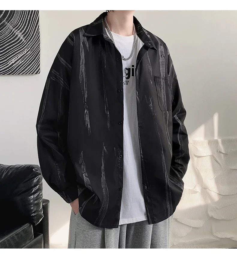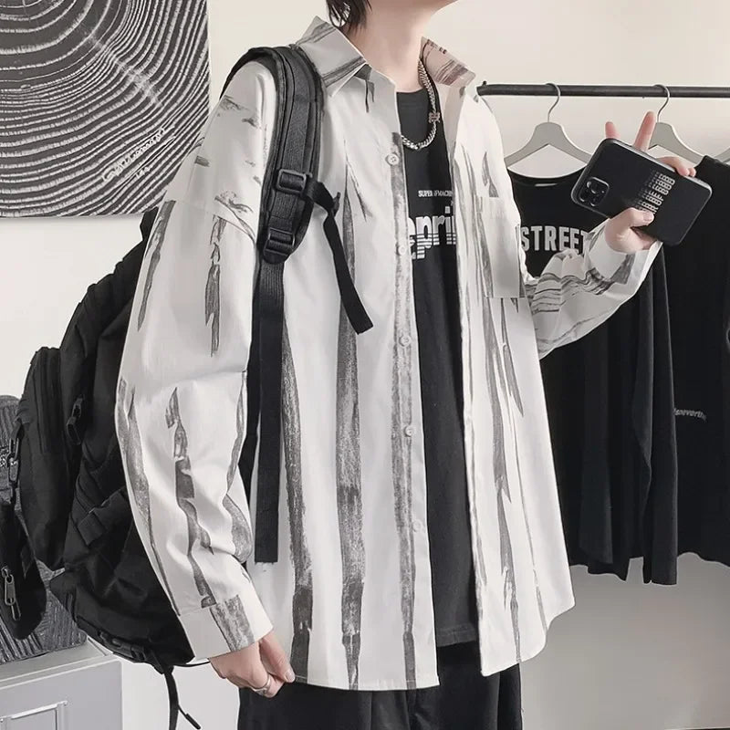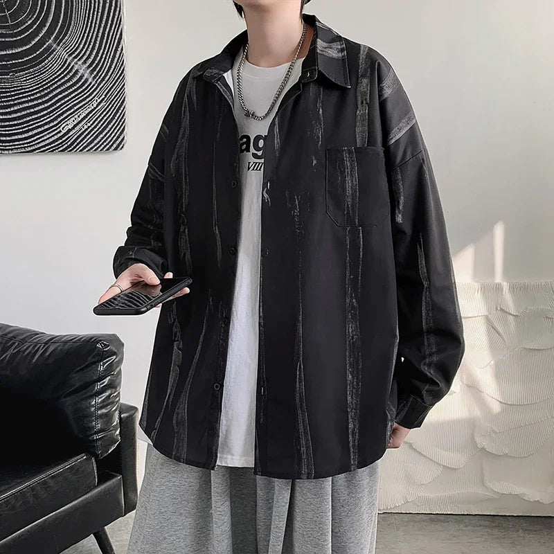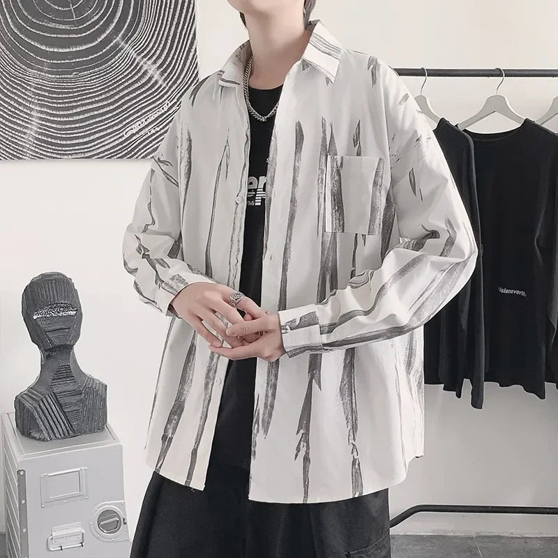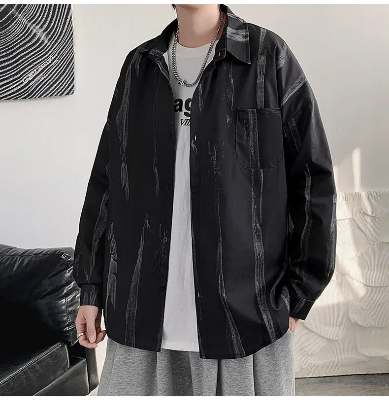 Casual Shirts Men All-match Tie-dye Spring Autumn BF Long Sleeve Tops Teens Fashion Harajuku Chic Coats Camisas Hombre Newly Ins