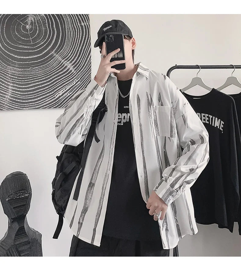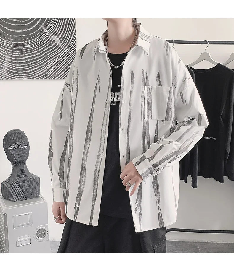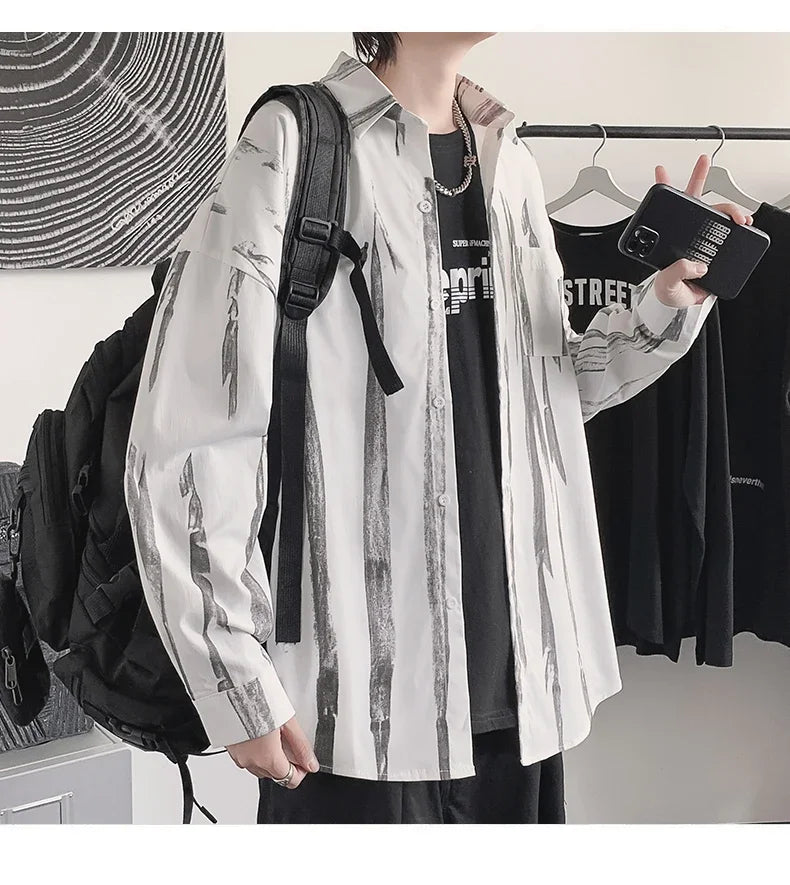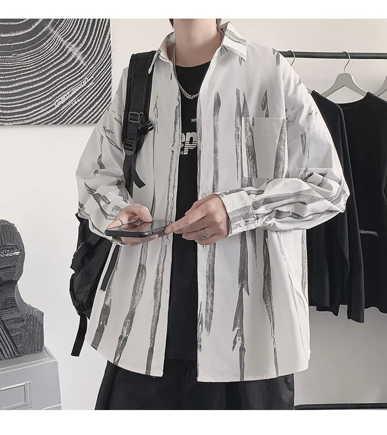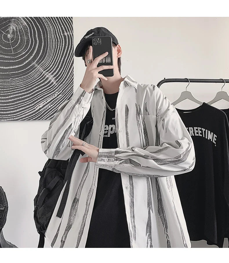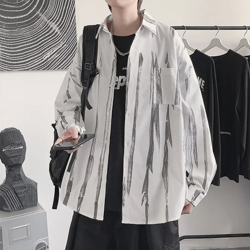 Casual Shirts Men All-match Tie-dye Spring Autumn BF Long Sleeve Tops Teens Fashion Harajuku Chic Coats Camisas Hombre Newly Ins