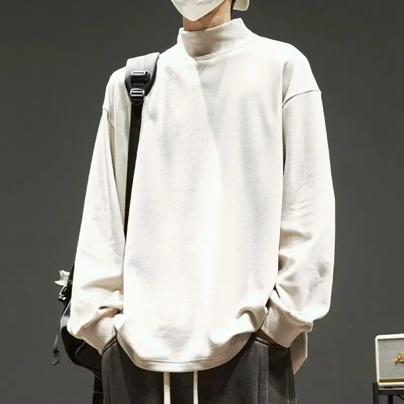 Long Sleeve T-shirts Men Fall Winter Keep Warm Mock Neck Basic Tops Simple Blusas Gentle Casual Teens Hombre All-match BF Ins