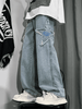 Threebooy Men's Distressed Star Embroidered Loose Jeans