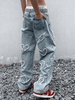 Threebooy Men's Heart Patch Light Wash Loose Jeans