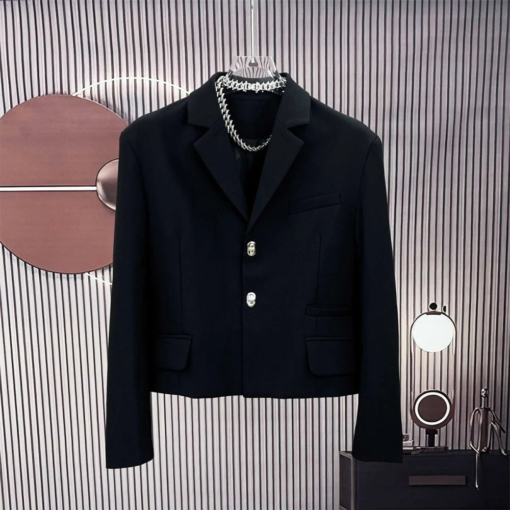 Threebooy Mens Jacket Shoulder Pad Short Suit Collar Casual Jacket Youth British Elegant Fashion All-Match Long Sleeve Jacket Men'S Wear