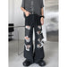 Threebooy Men's Ripped Hole Jacquard Jeans Summer Thin Handsome Casual Pants Unisex High Street Straight Wide Leg Jeans Blue/Black