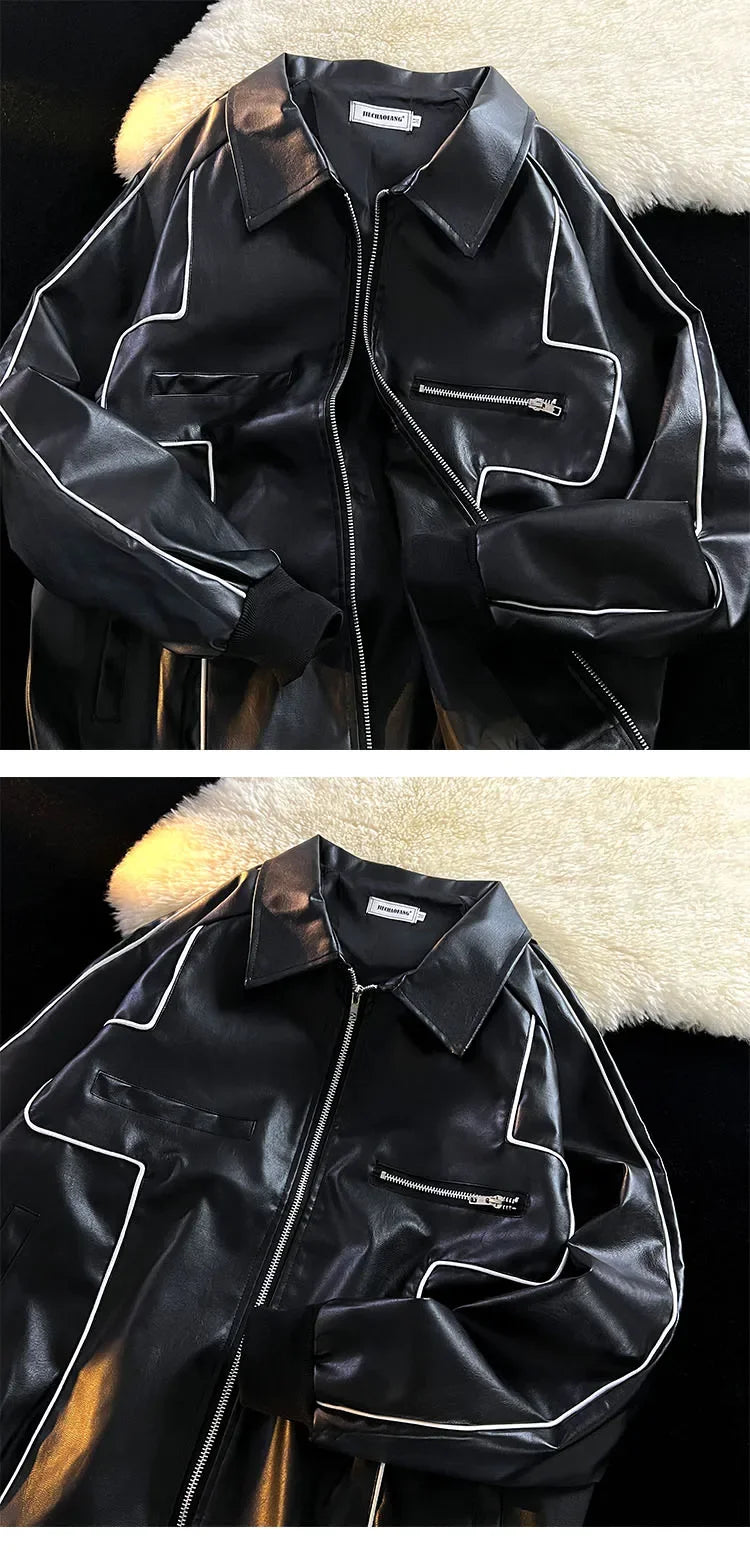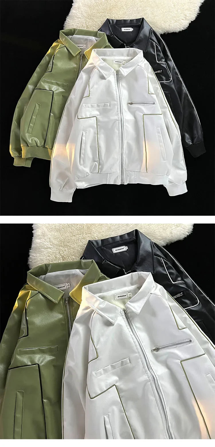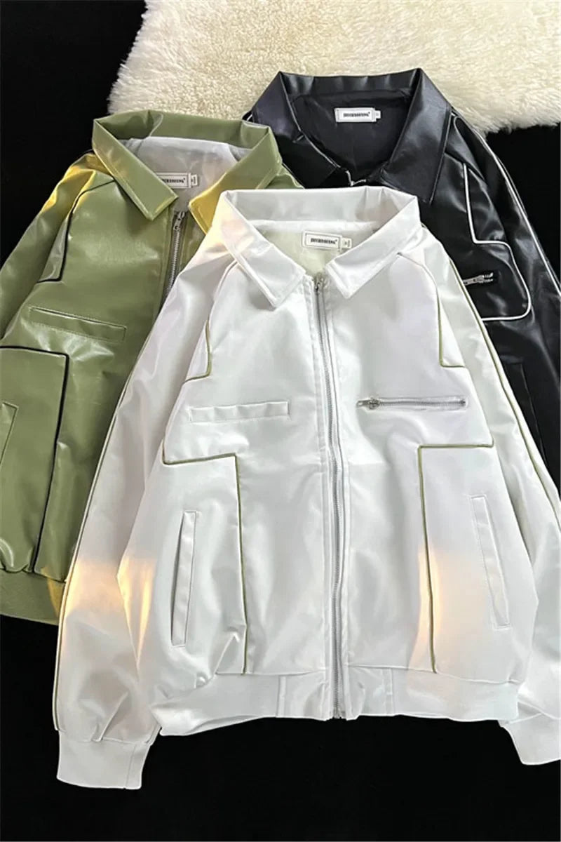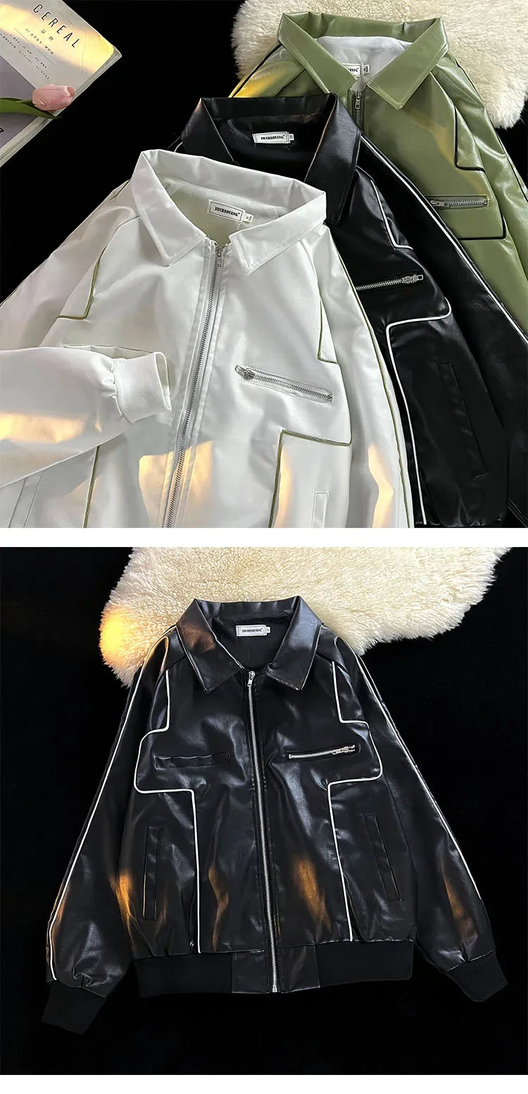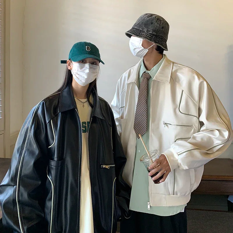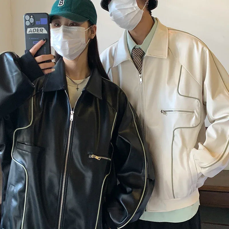 PU Leather Solid Jackets Men American Vintage Teens Punk Rock Style Stylish Hombre Couples Designs Chaquetas Outwear Streetwear
