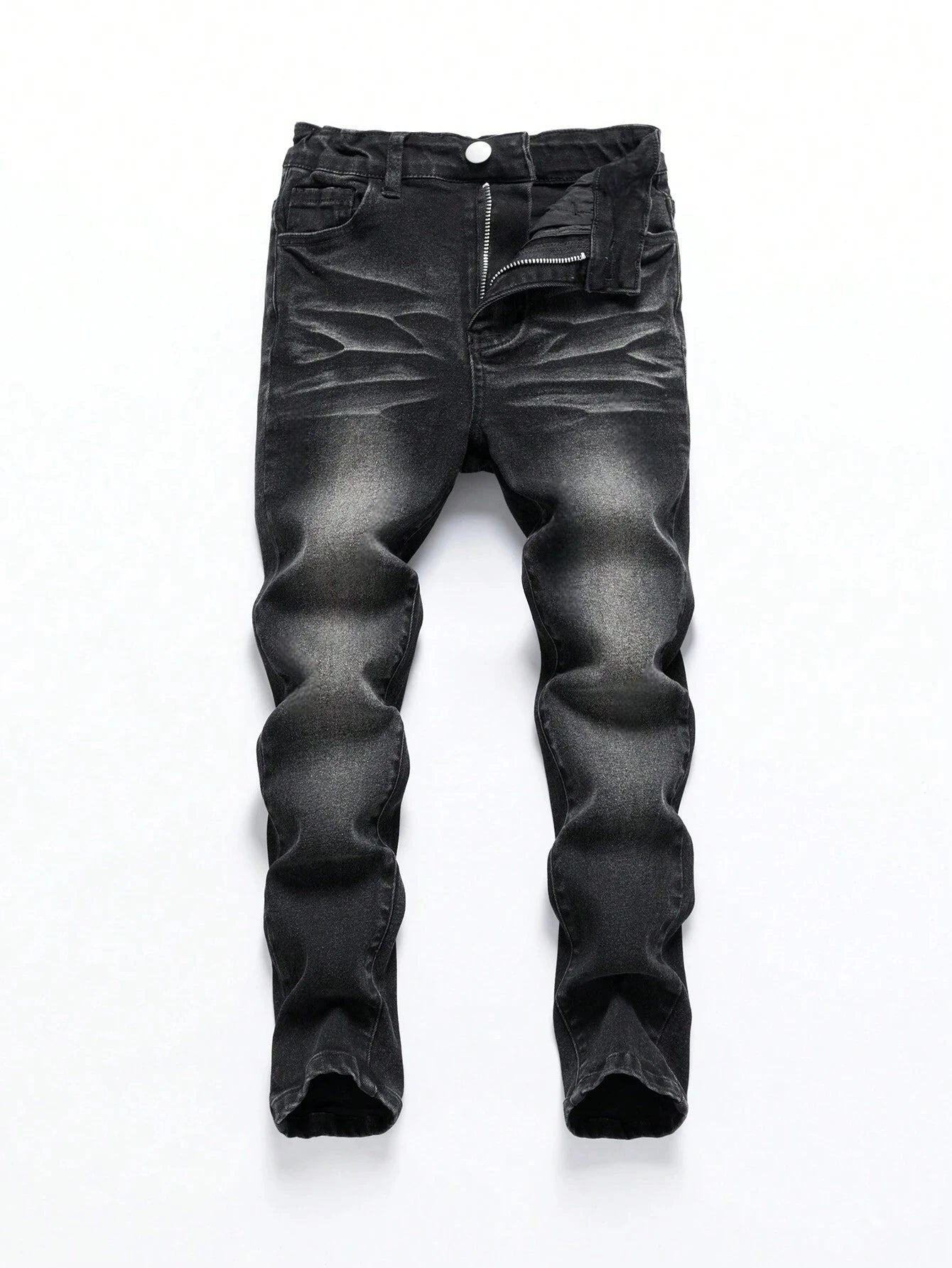 Threebooy 1 Piece of Men's Four-Season Snowflake Washed Fashion Jeans, Stretch Slim Fit Light Gray Dark Black Casual Denim Pants, Normcore and Fashionable, Suitable for Everyday Wear