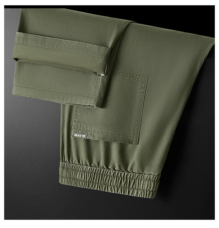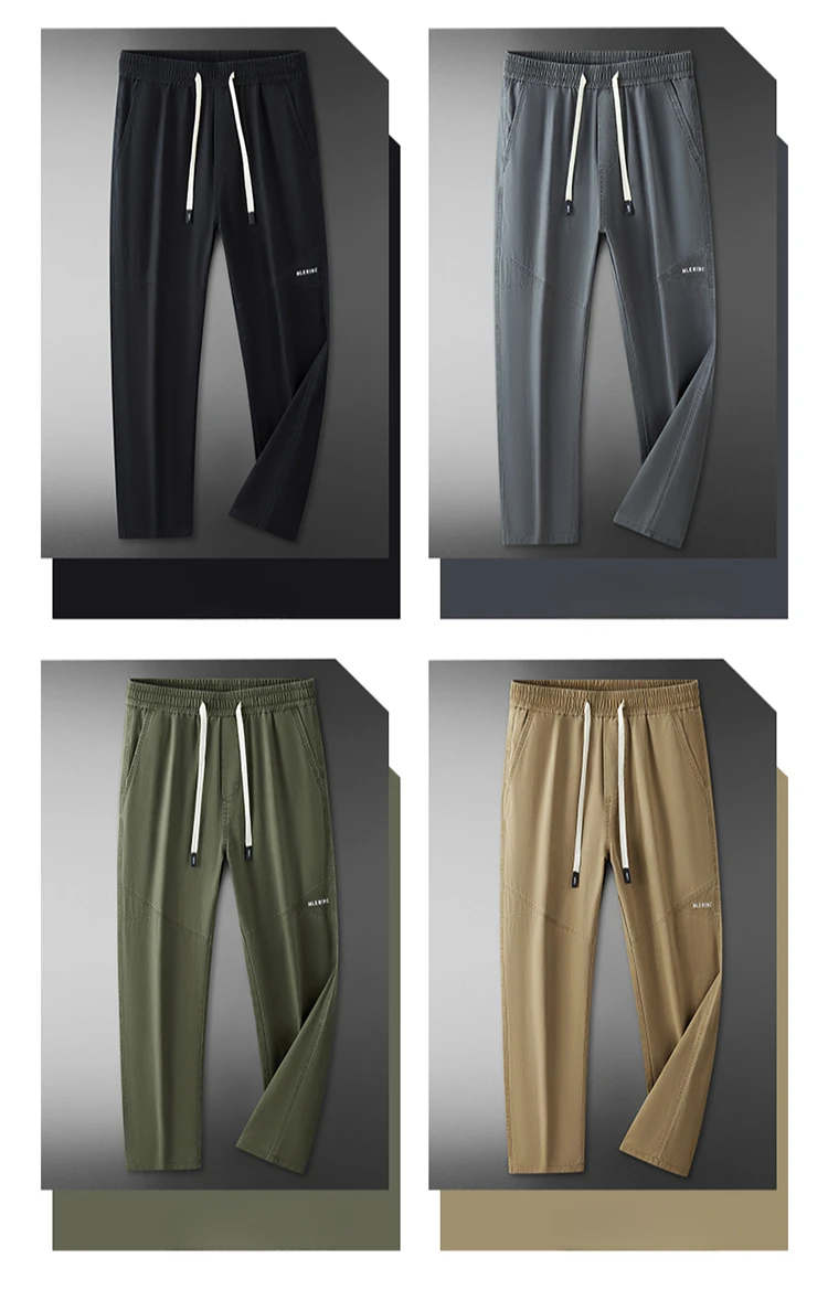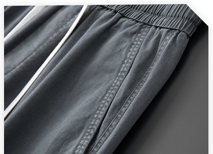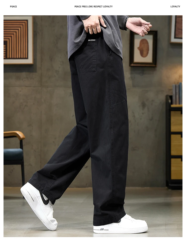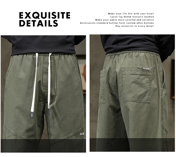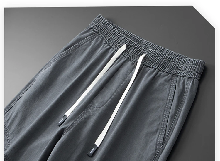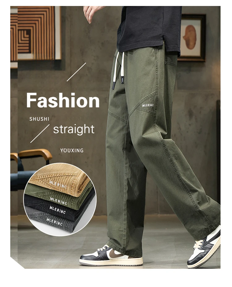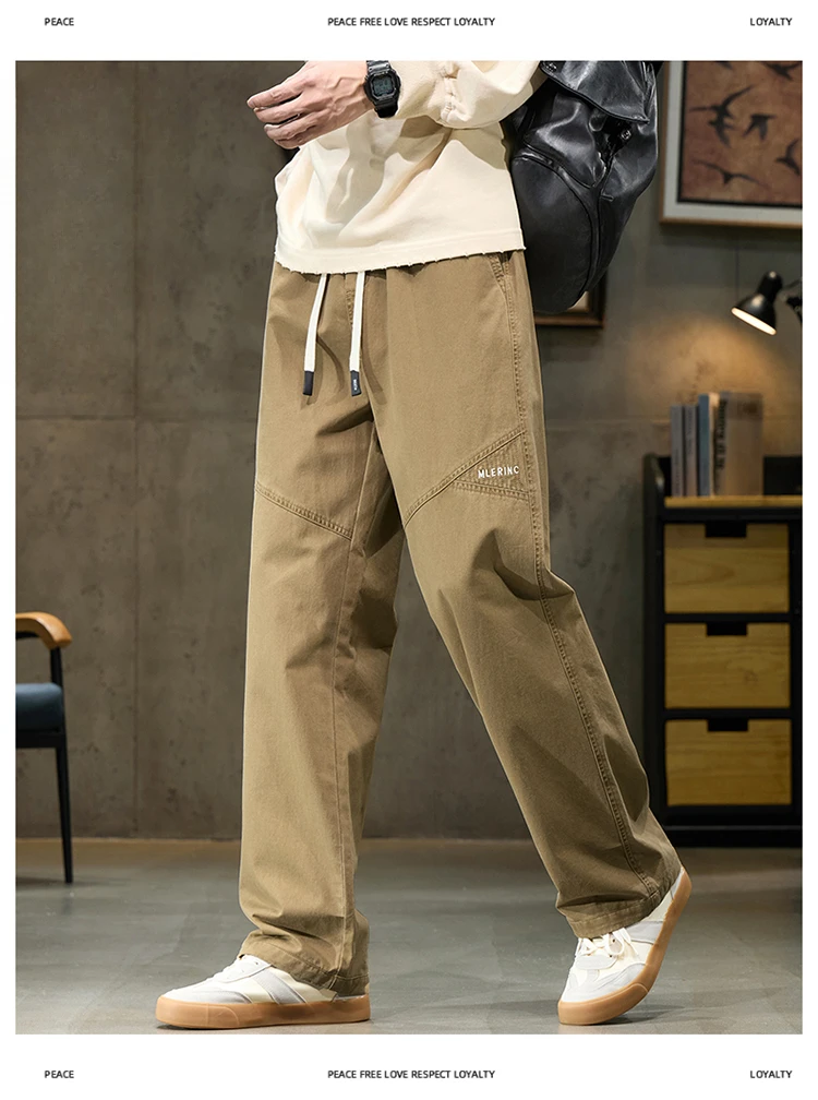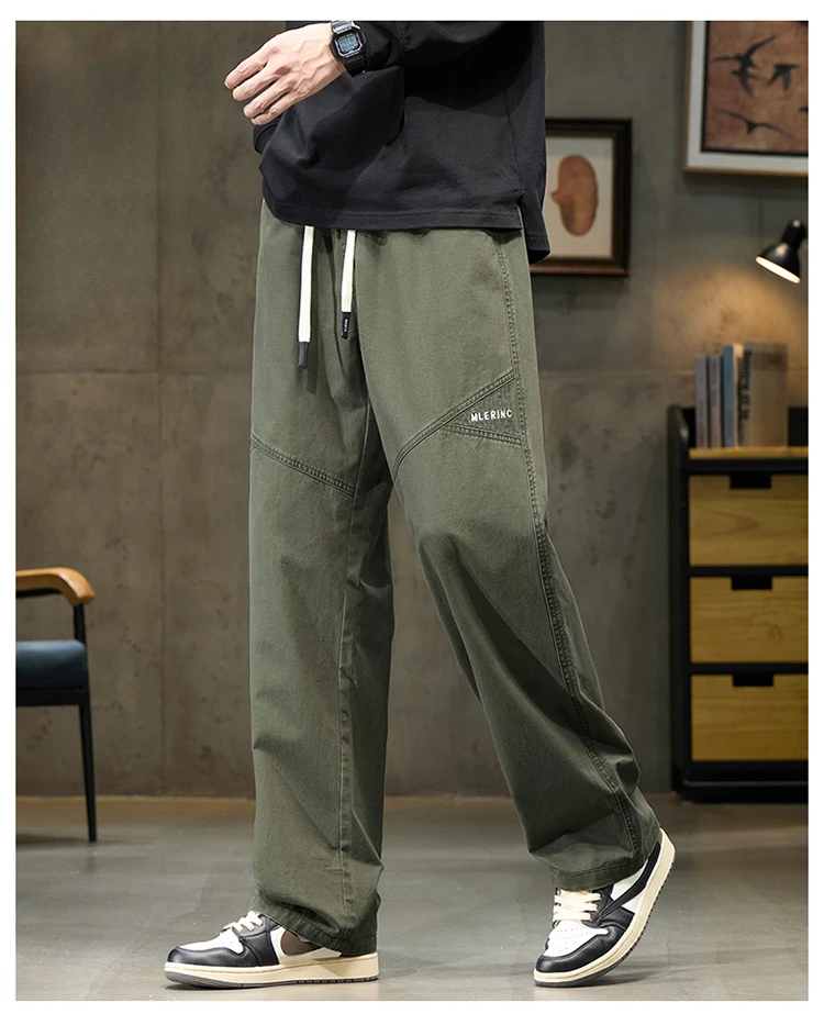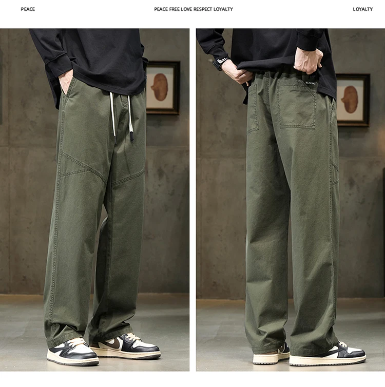 Threebooy 100% Cotton 4 Colors Men's Baggy Straight Casual Pants Elastic Waist Drawstring Fashion Korean High Street Cargo Male Trousers