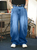 Threebooy 1Pc Men's Daily Travel Casual American Street Loose Jeans, Black, Light Blue, Sea Blue Fashion Street Style Retro Lantern Jeans Denim Pants
