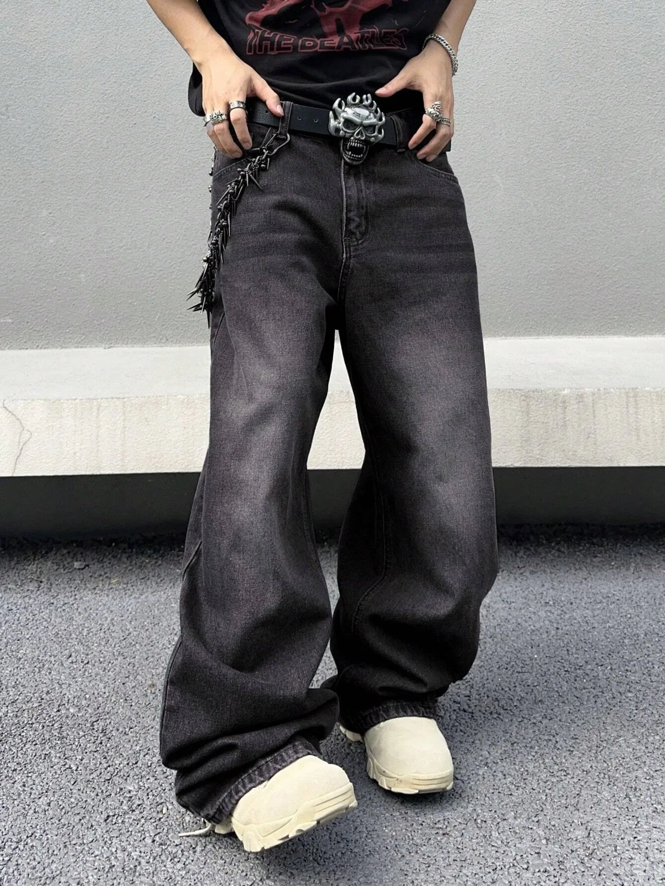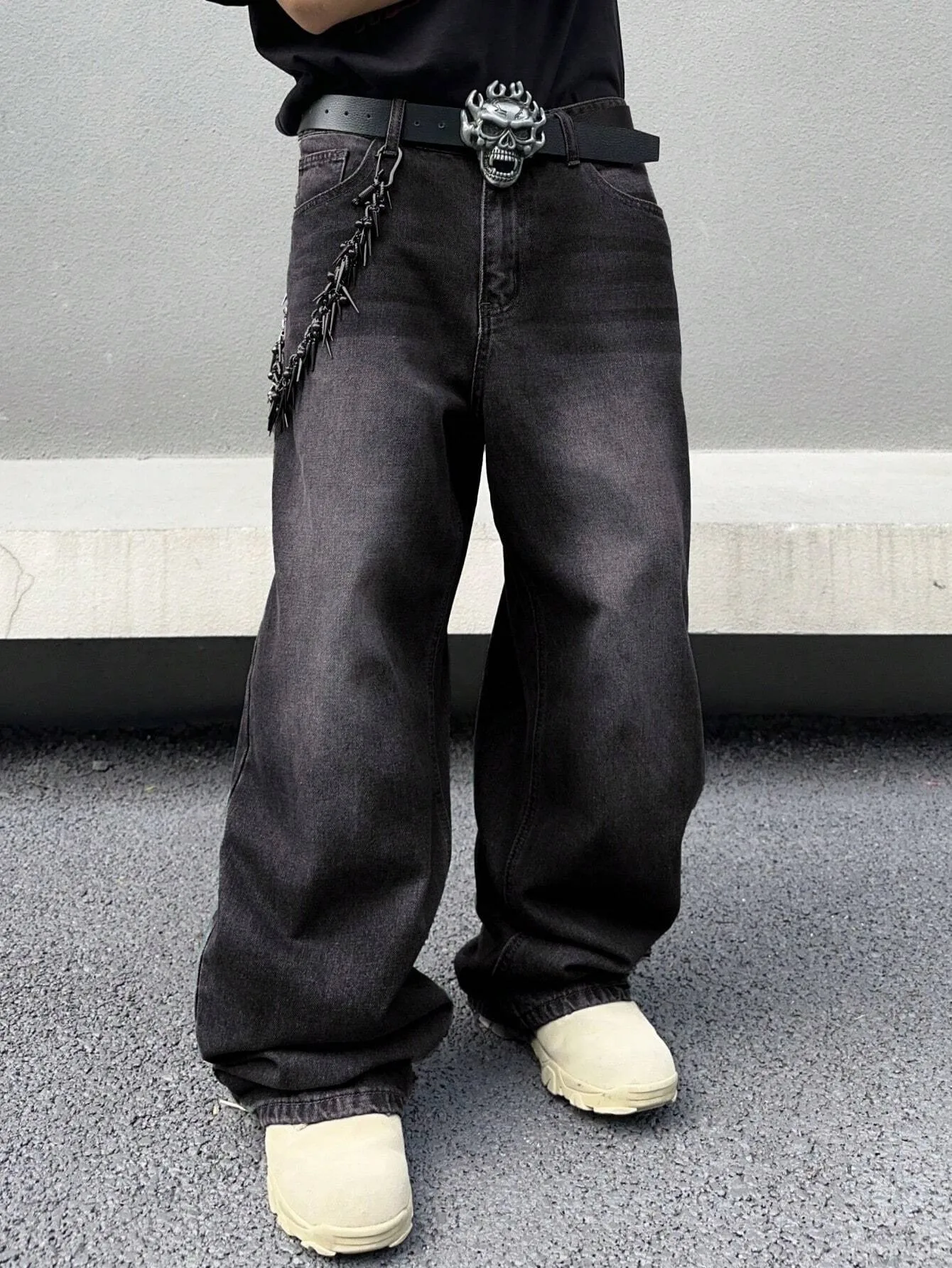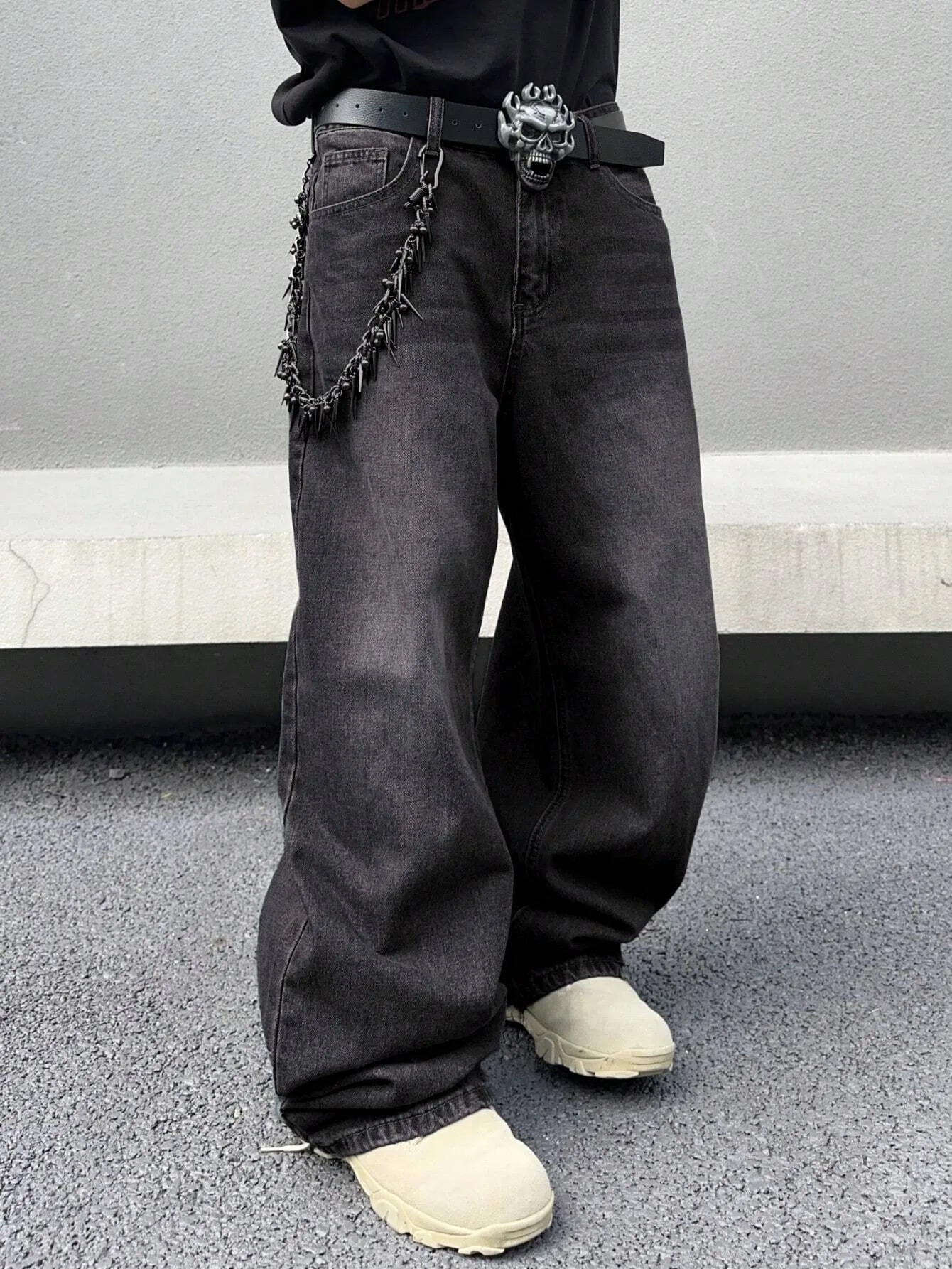Threebooy 1Pc Men's Daily Travel Casual American Street Loose Jeans, Black, Light Blue, Sea Blue Fashion Street Style Retro Lantern Jeans Jeans Denim Pants