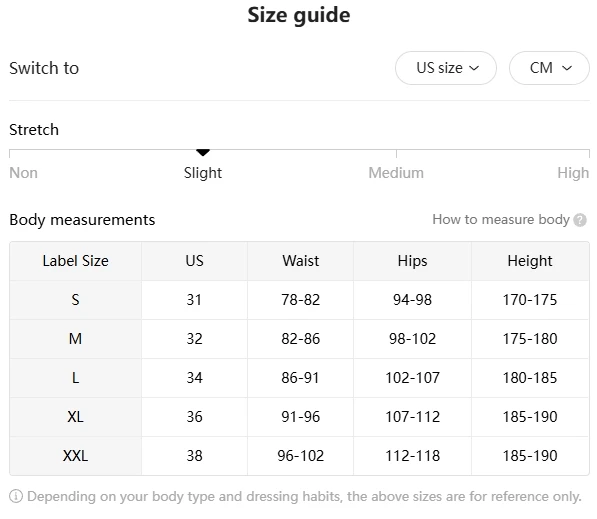 size_info: {"sizeInfoList":[{"length":{"cm":"74","inch":"29.13"},"size":"S","vid":-1},{"length":{"cm":"78","inch":"30.71"},"size":"M","vid":-2},{"length":{"cm":"82","inch":"32.28"},"size":"L","vid":-3},{"length":{"cm":"86","inch":"33.86"},"size":"XL","vid":-4},{"length":{"cm":"90","inch":"35.43"},"size":"XXL","vid":-5}]}