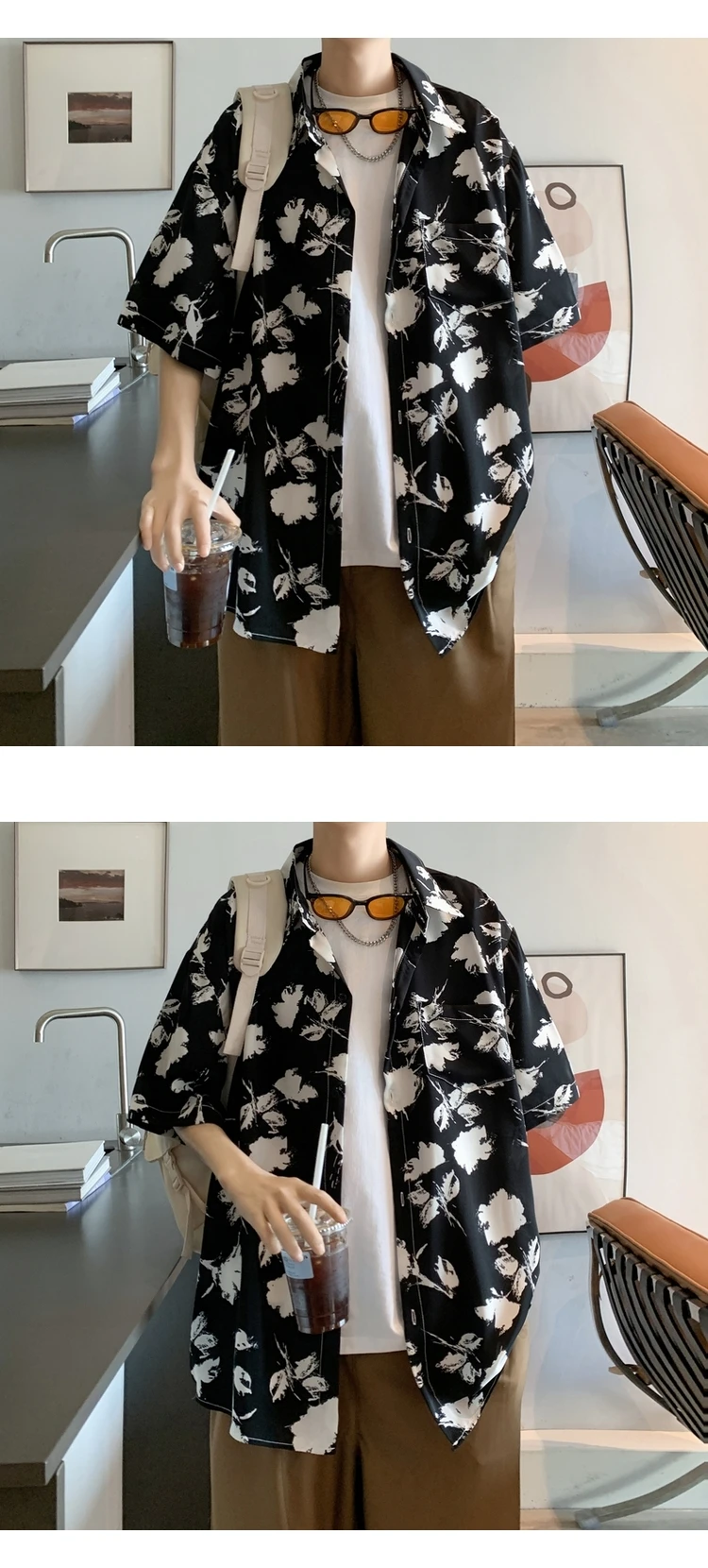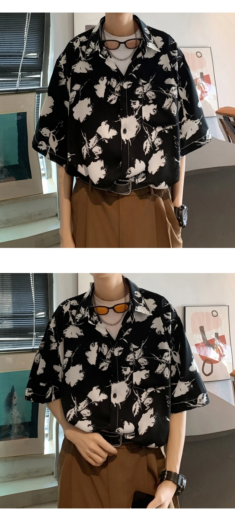 Threebooy 2024 Summer Fashion Streetwear Men Shirts Flower Painting Print Blouse Hip Hop Harajuku Loose Short Sleeve Casual Tops Men Shirt