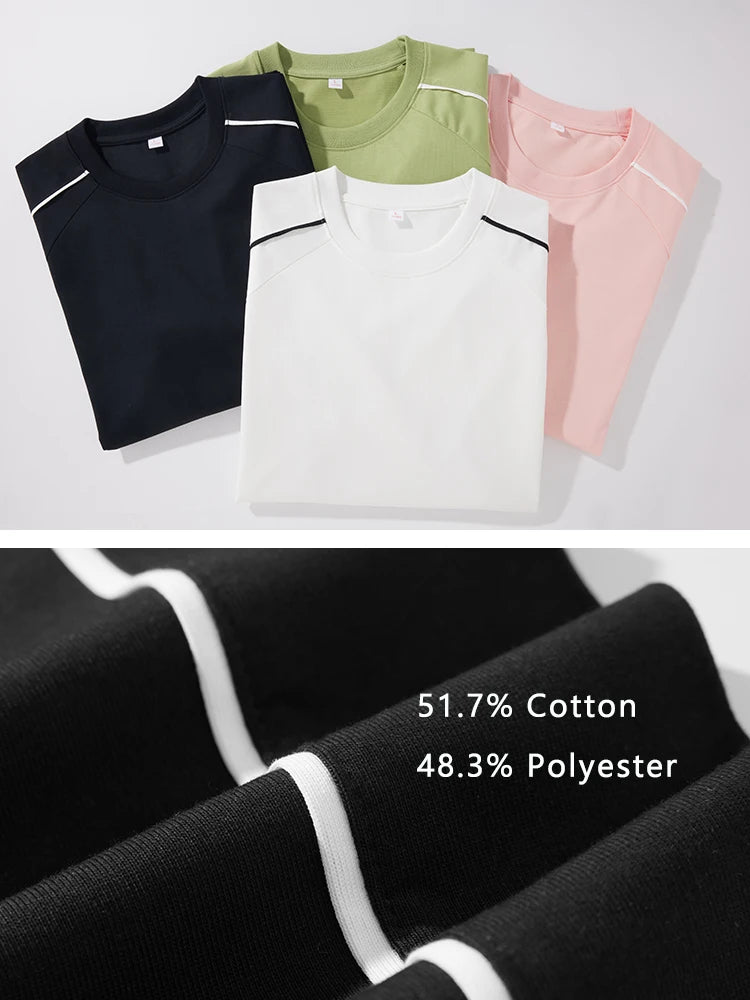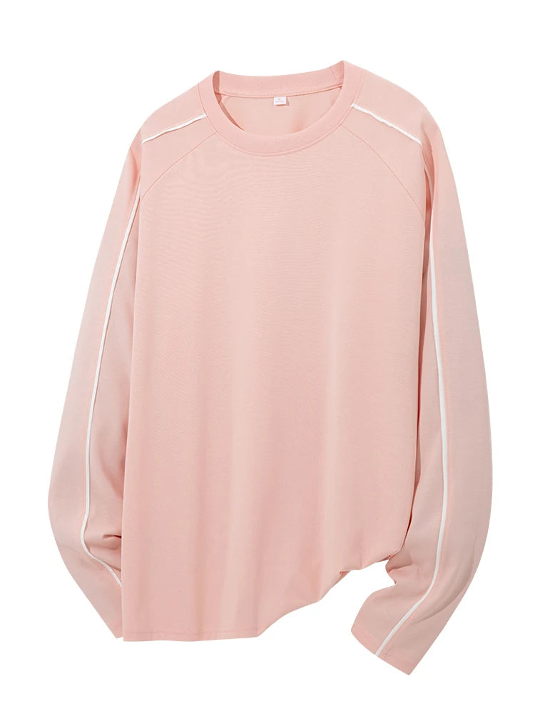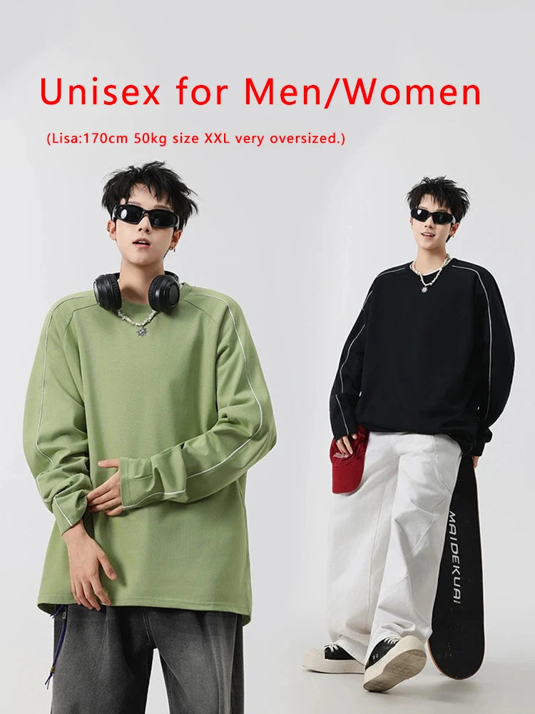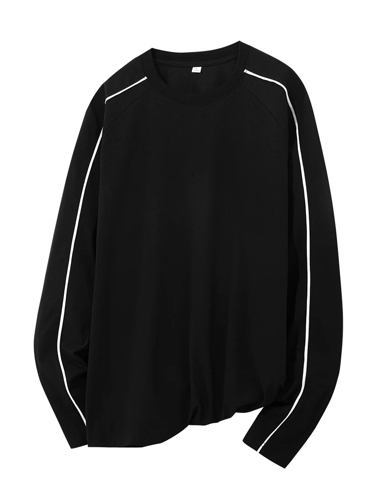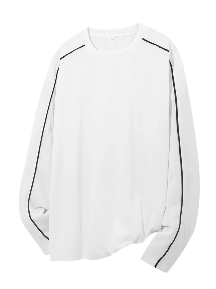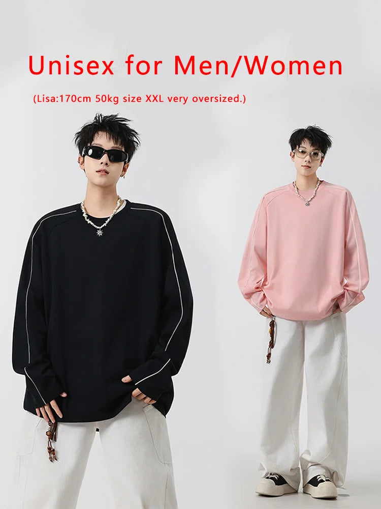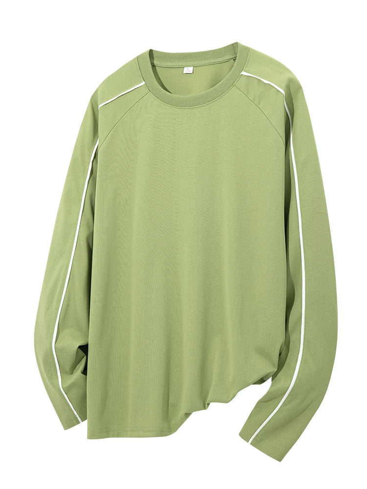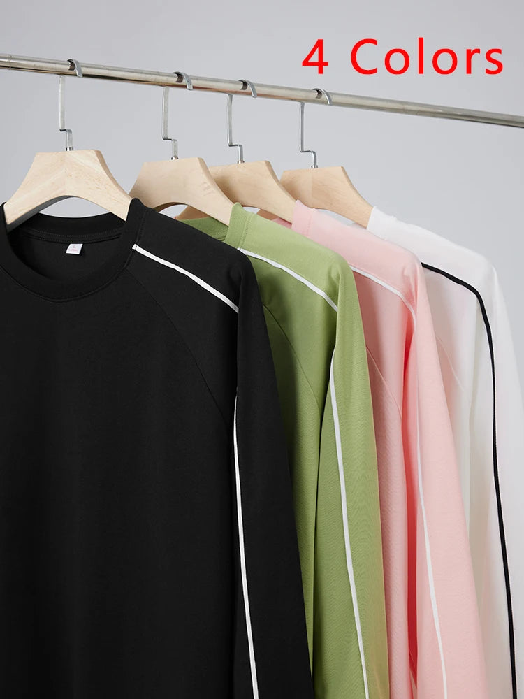Threebooy 260GSM Striped Long Sleeve T-Shirts Men Korean Fashion O-Neck Loose Fit Basic Tee Tops Unisex Couples Oversized Tshirts