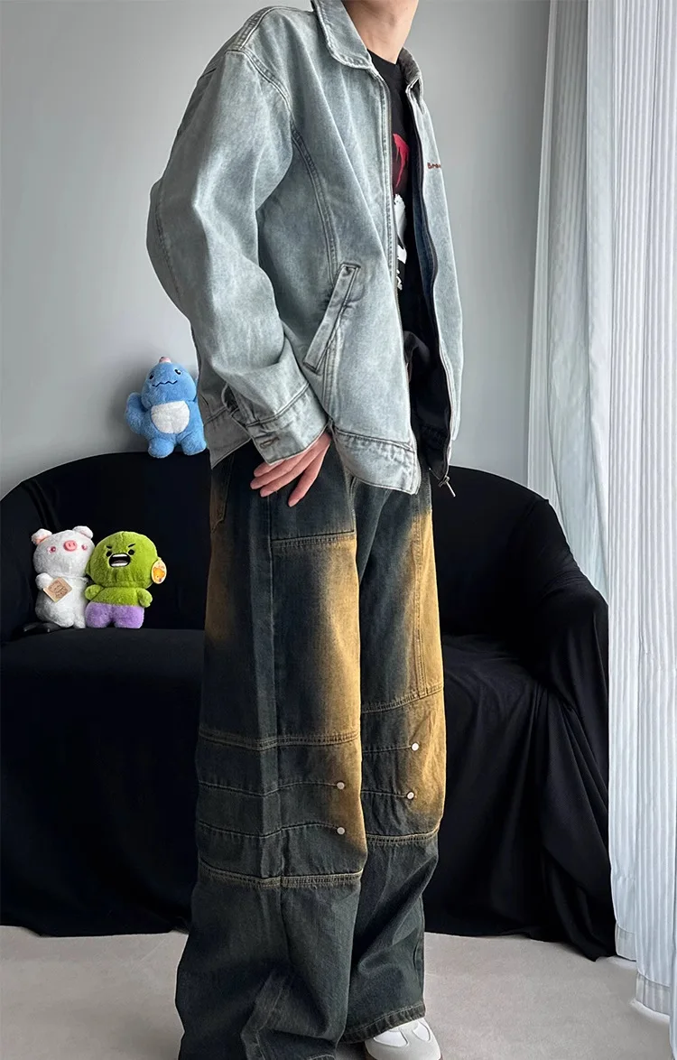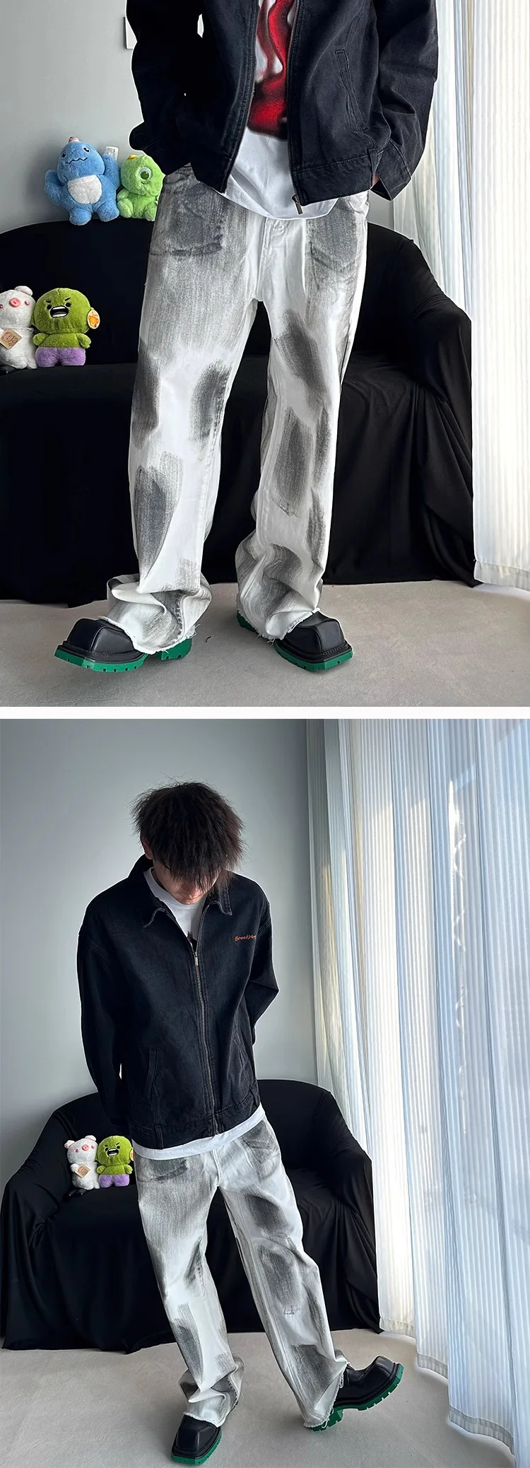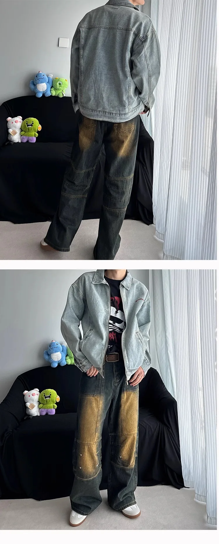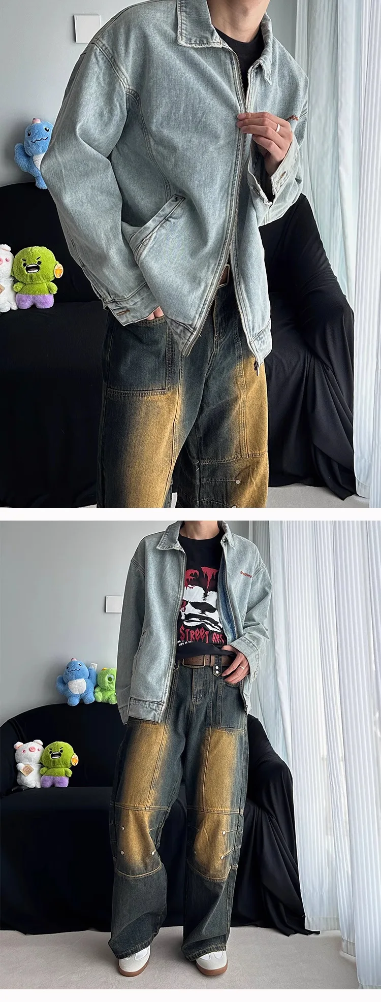 Threebooy 90s Fashion American Embroidery Washed Denim Jacket Men's Spring and Autumn New Style Loose Casual Jacket Top Couple