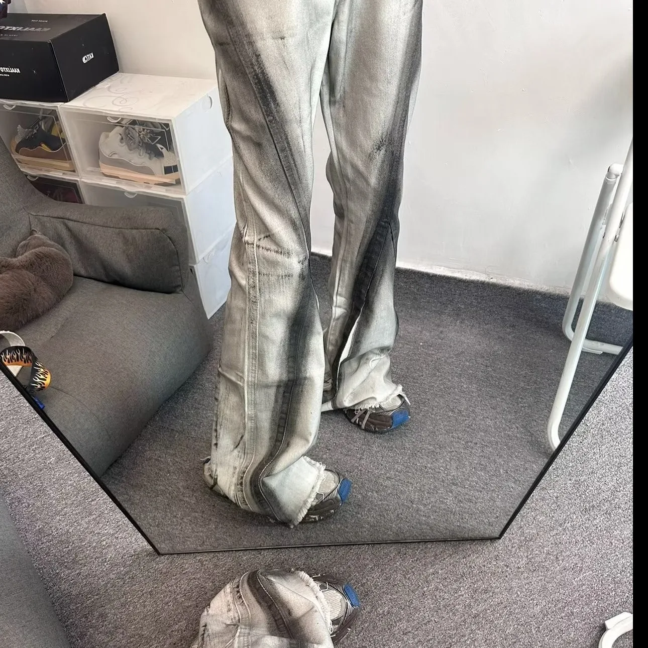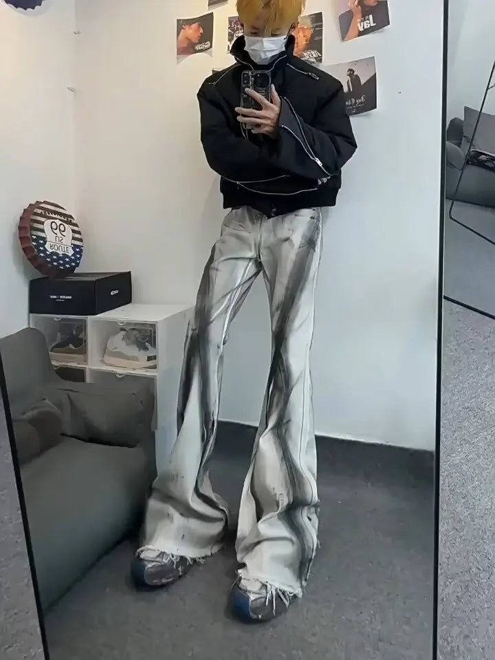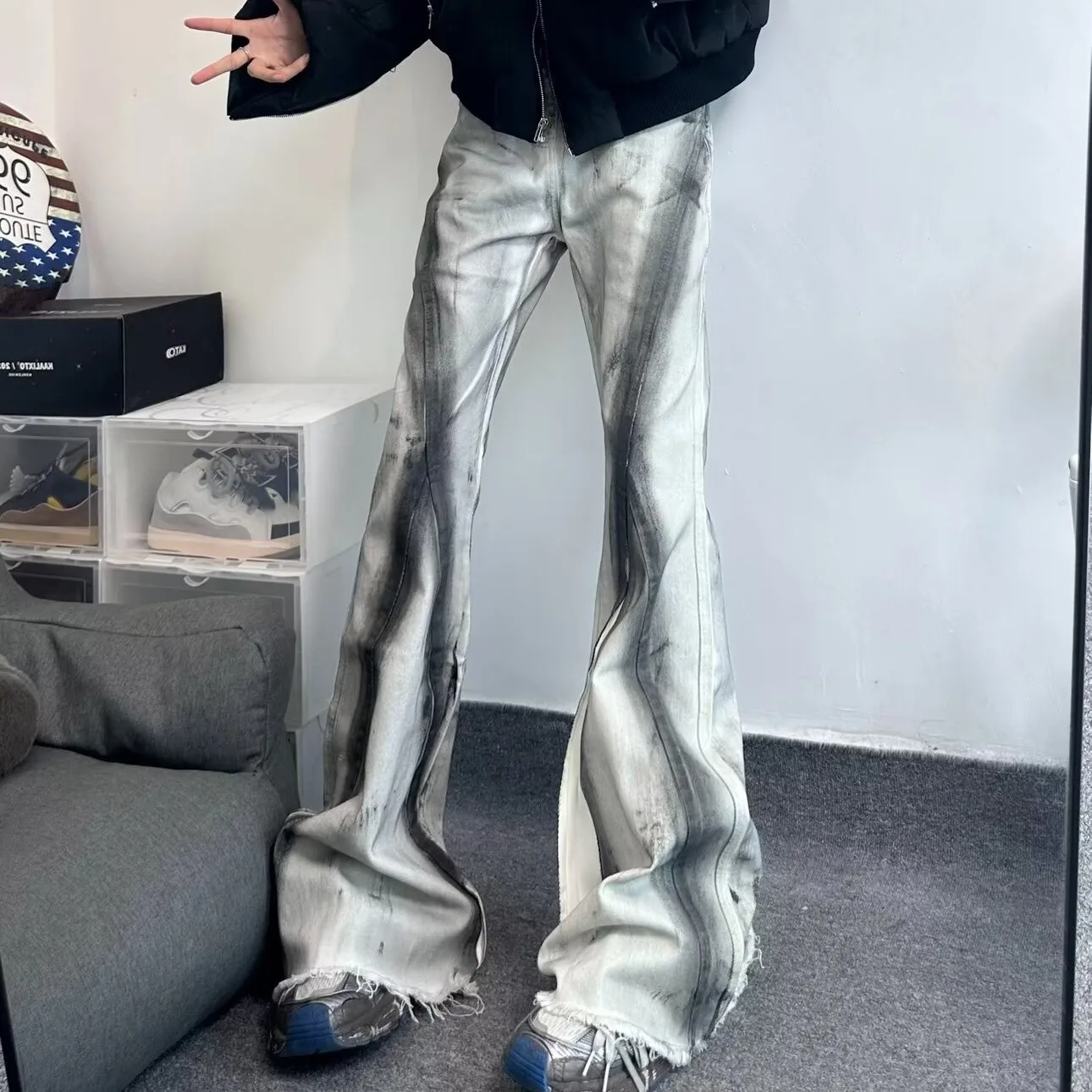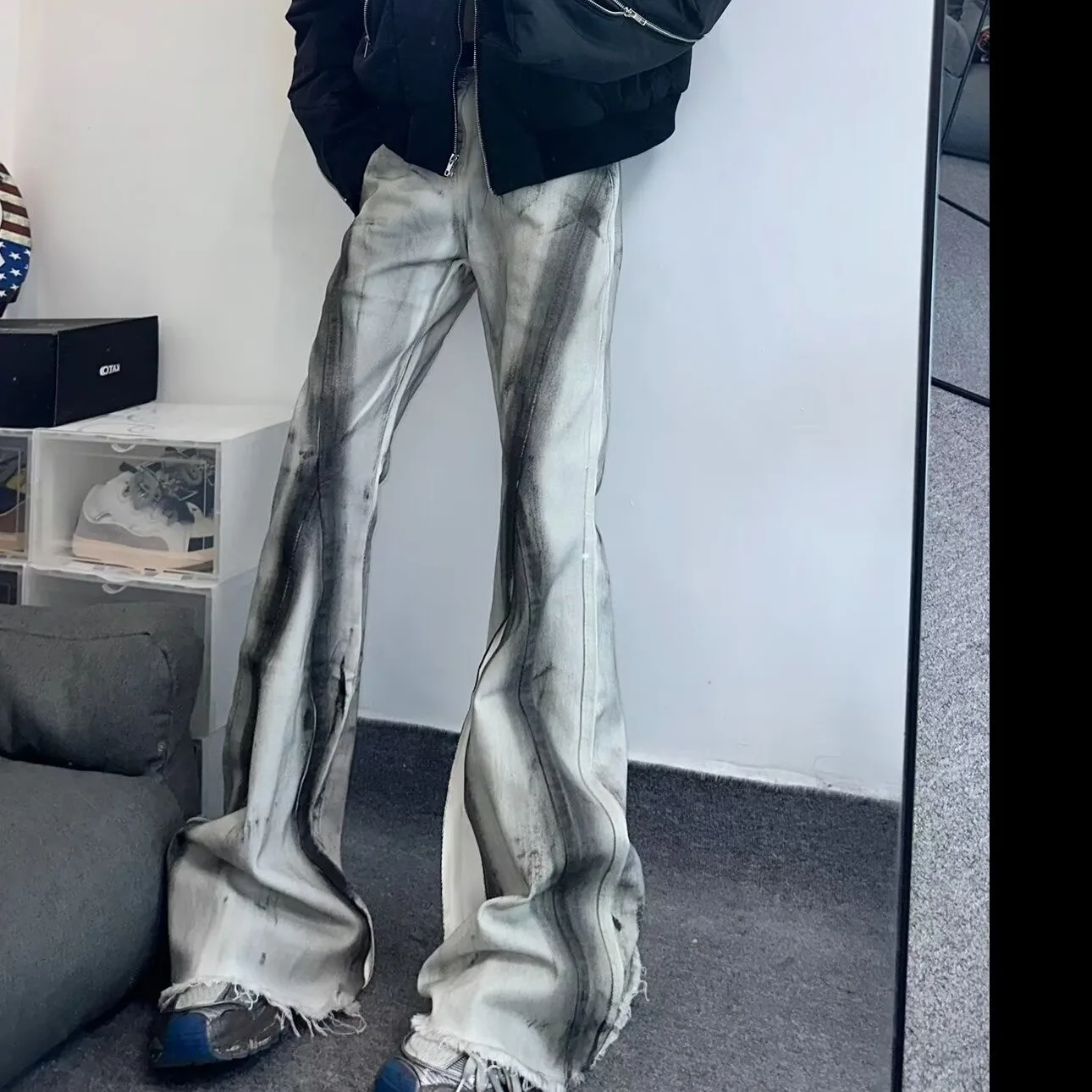 Threebooy 90s Streetwear Flared Pants American Street Retro Black Gradient Jeans Men's High Street Vibe Style Horn Pants Men