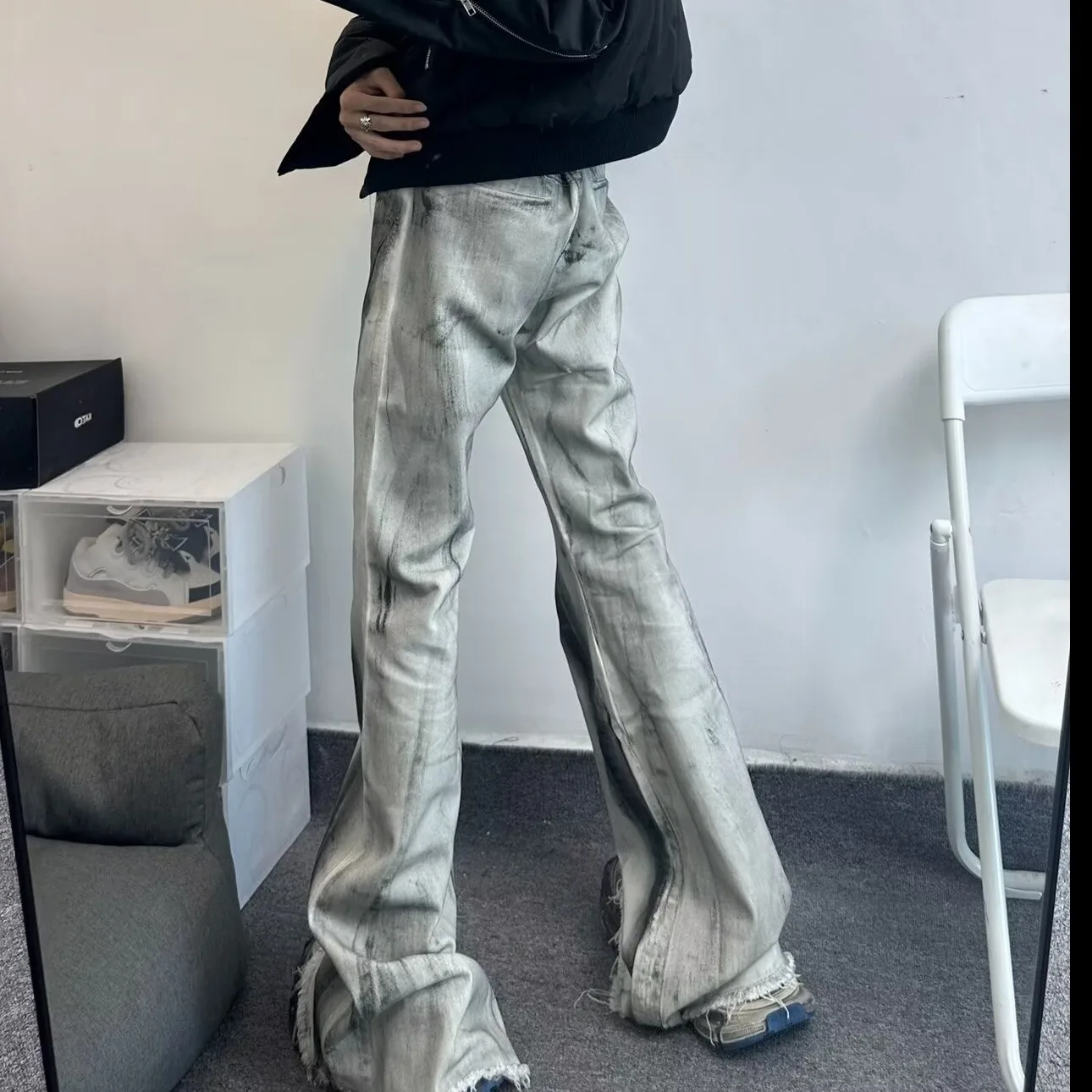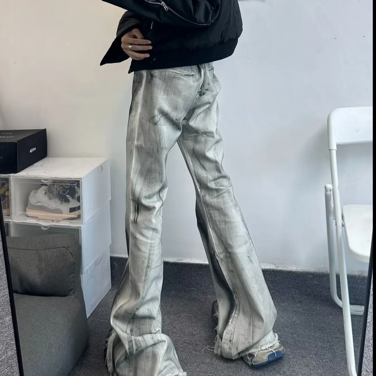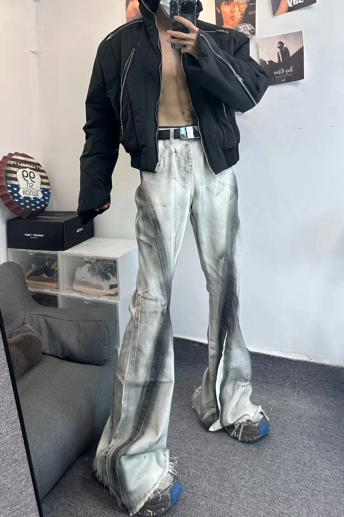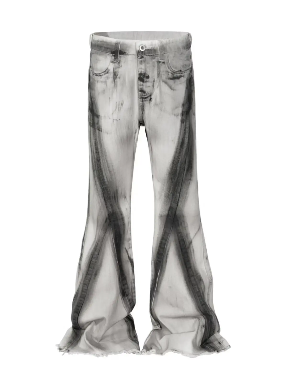 Threebooy 90s Streetwear Flared Pants American Street Retro Black Gradient Jeans Men's High Street Vibe Style Horn Pants Men