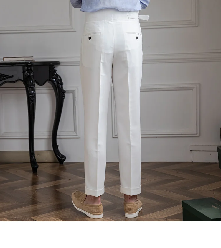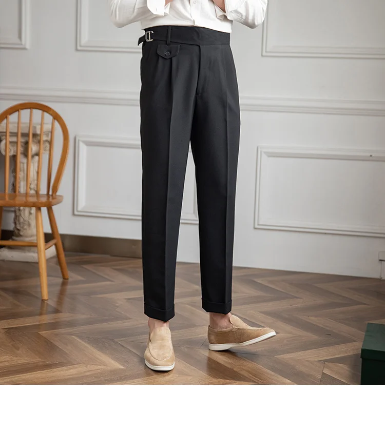 Threebooy Adjustable High Waist Straight Tube Pants Pantalones Hombre Dress Ankle Pant Men British Straight Pants Men Social Trousers Pant