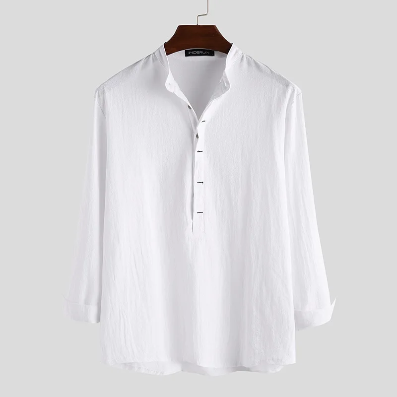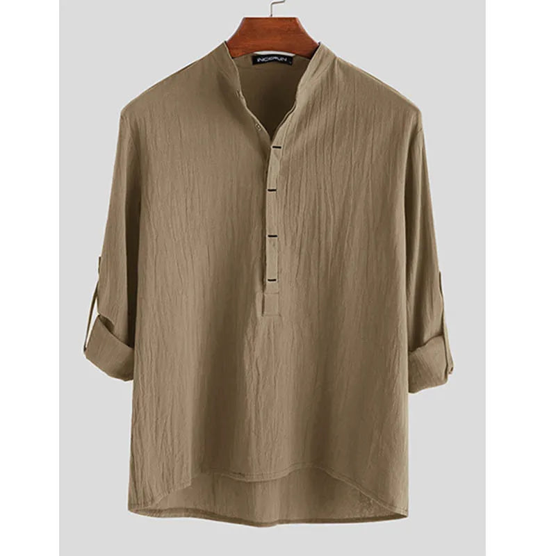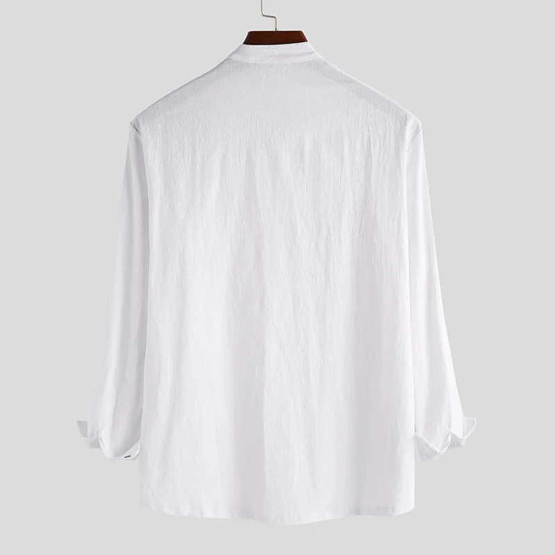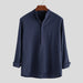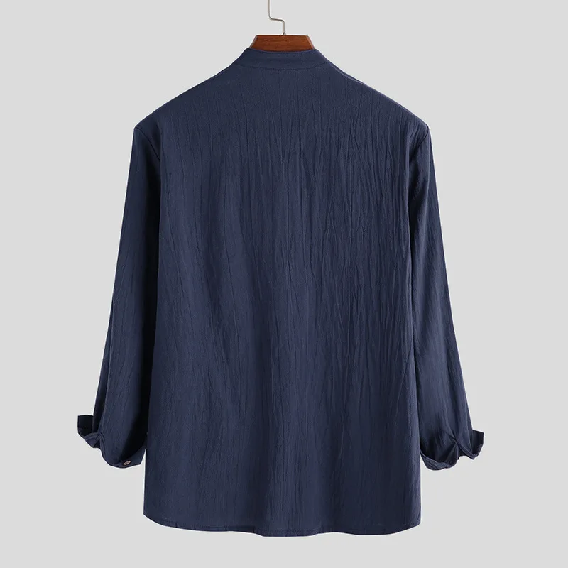 Threebooy All Seasons Men's Casual Loose Cotton Hemp Long Sleeve Shirt