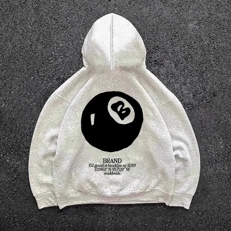 Threebooy American Black Billiards Print Hoodie High Street Men and Women Vintage New Couple Hooded Sweatshirt K Pop Clothes Y2k Tops