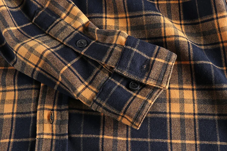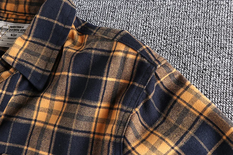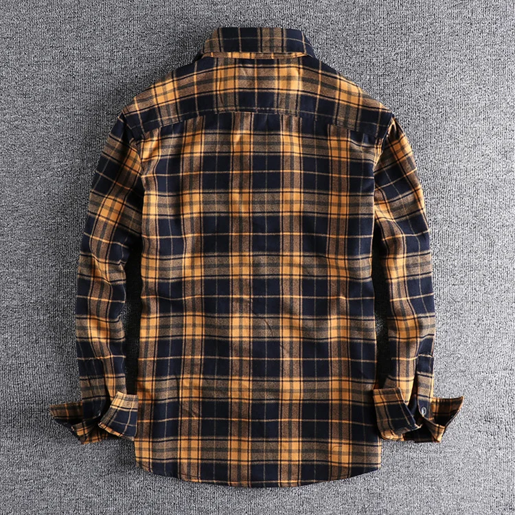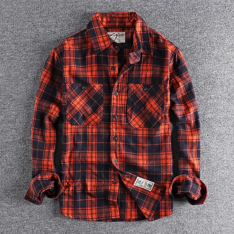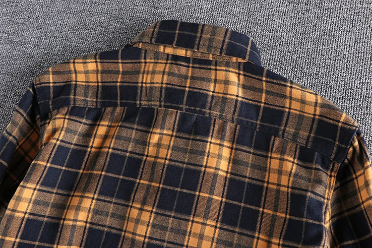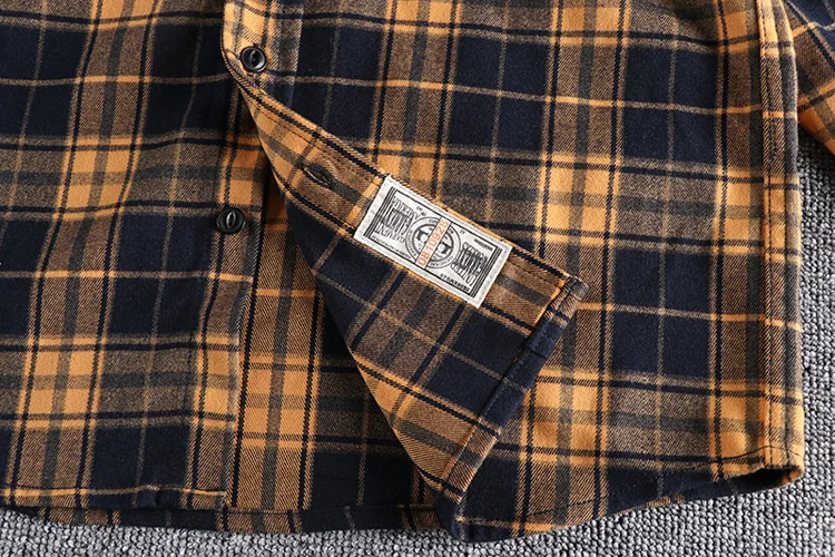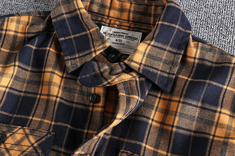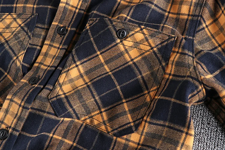 Threebooy American Casual Wear Men Plaid Shirt Fashion Thickened Double Pocket Work Clothes Long Sleeved Shirt Male Tops Clothes