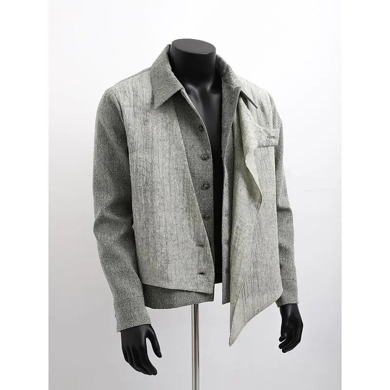 Threebooy American High-end Bomber Jacket Fake Two-piece High Street Trend Top Korean Lapel Solid Color Cleanfit Design Jacket Aesthetic