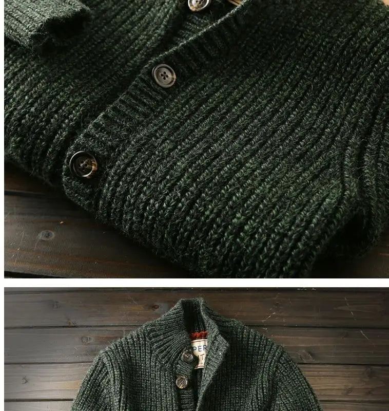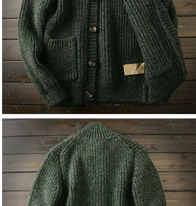 Threebooy American High-end Knit Cardigan Men's Stand Collar Sweater Cardigan Korean 2025 New Spring Autumn New Sweater Button Jacket Chic