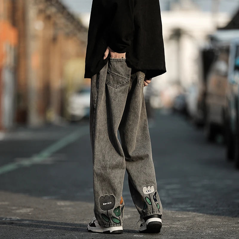 Threebooy American High Street Vibe Straight Jeans Men's Ins Wide Leg Pants Fashion Brand Ruffian Handsome Loose Black Mop Pants
