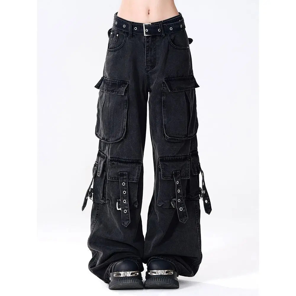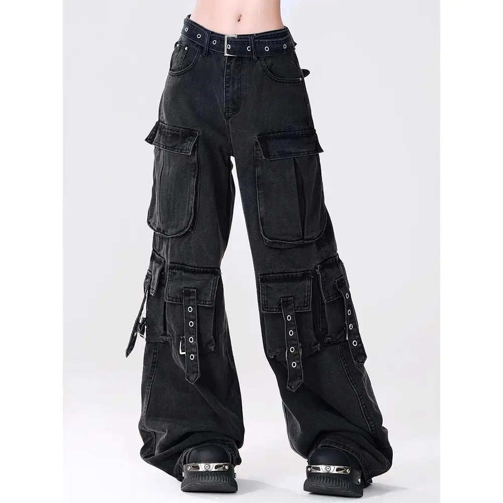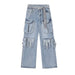 Threebooy American hip-hop men and women trendy and personalized multi pocket straight leg jeans for couples loose retro casual pants y2k