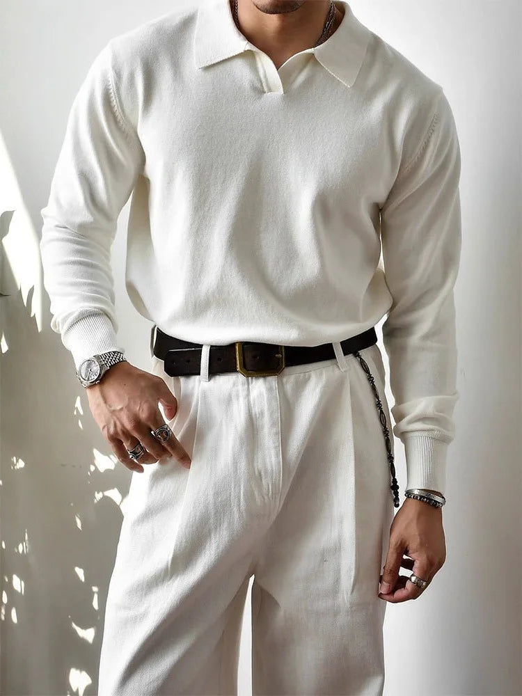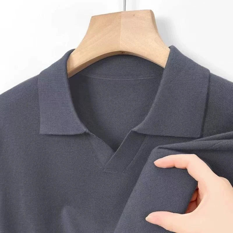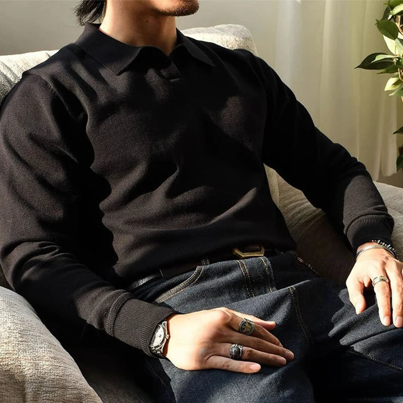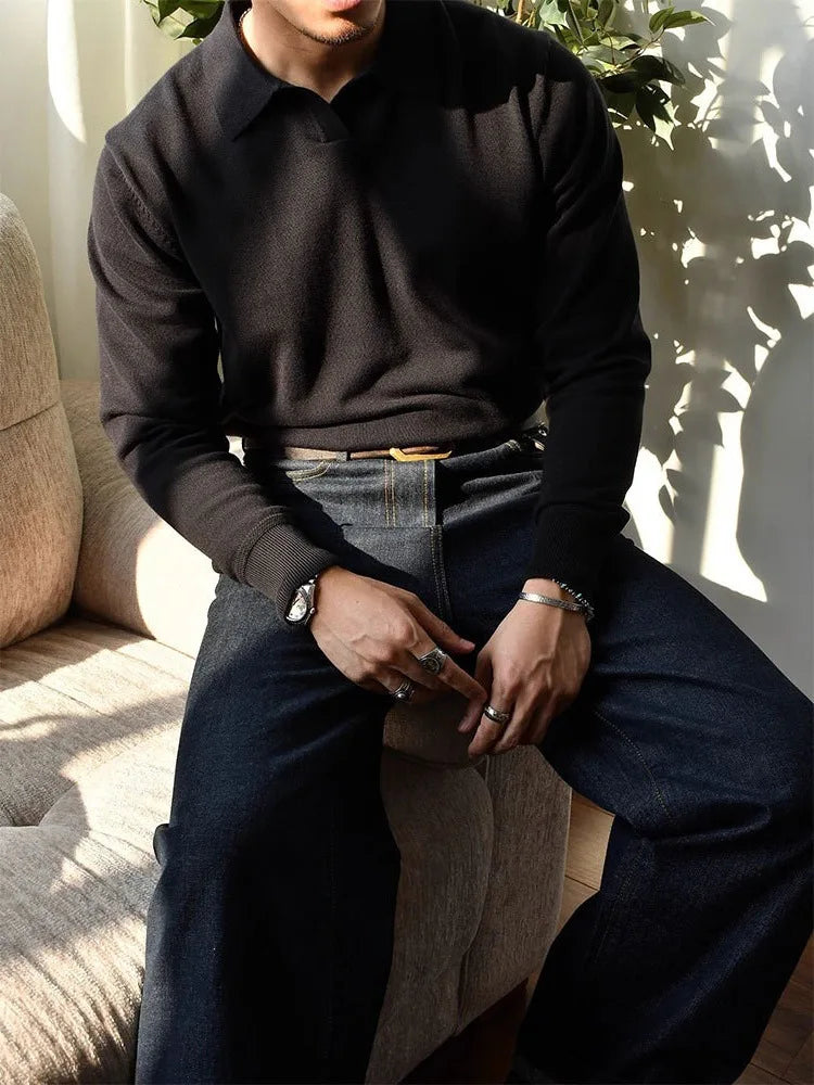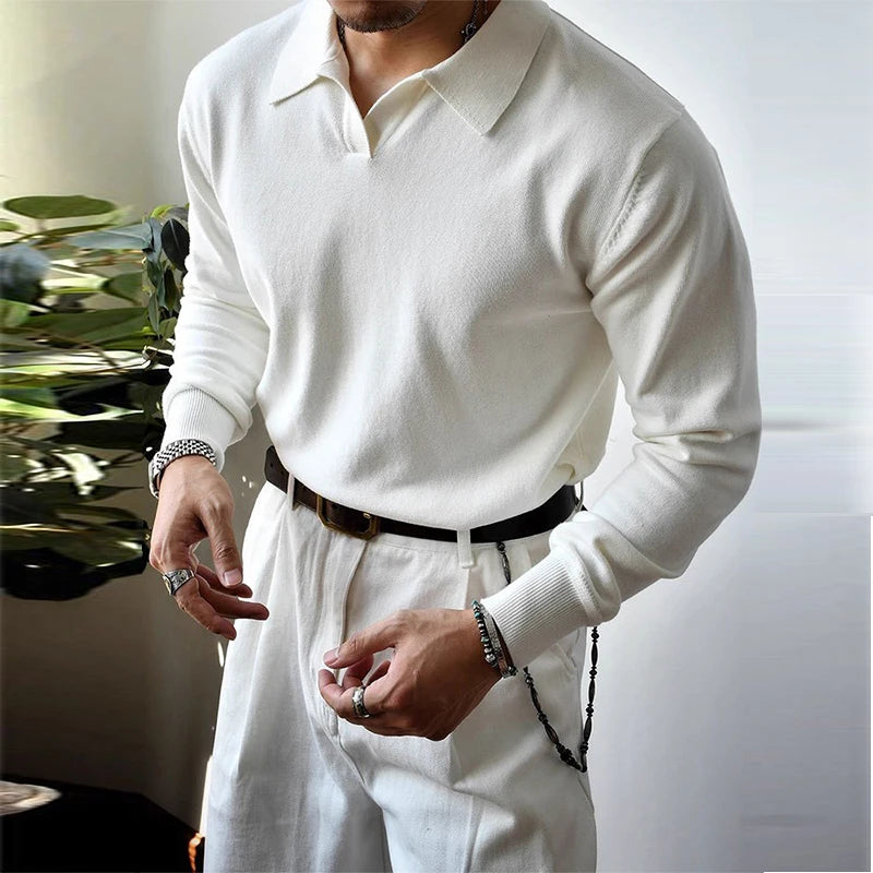 Threebooy American Leisure Men Polo Shirt Luxury V Neck Knitted Solid Color Fitness Pullover Casual Slim Sports Long Sleeve Knitwear M-3XL