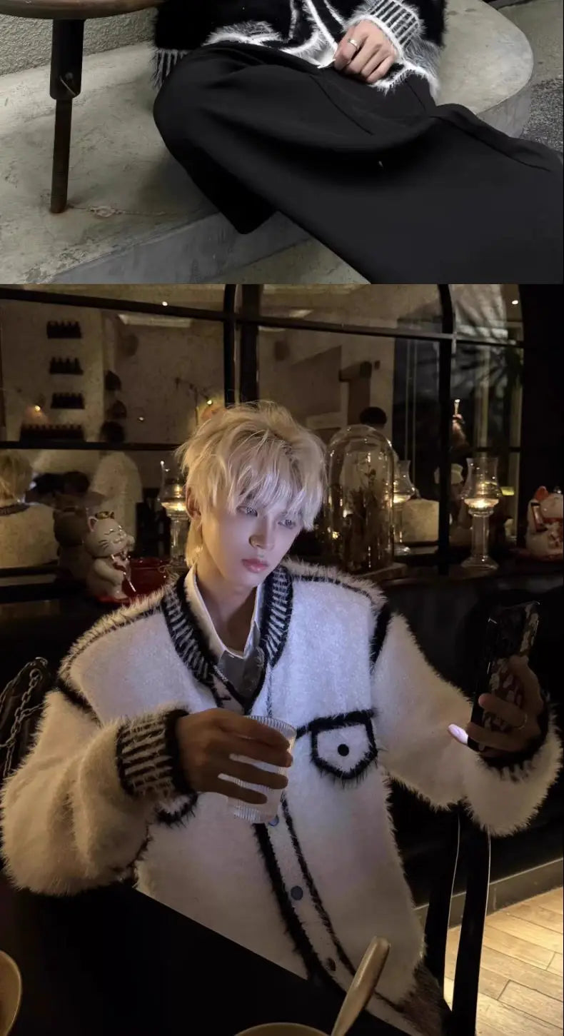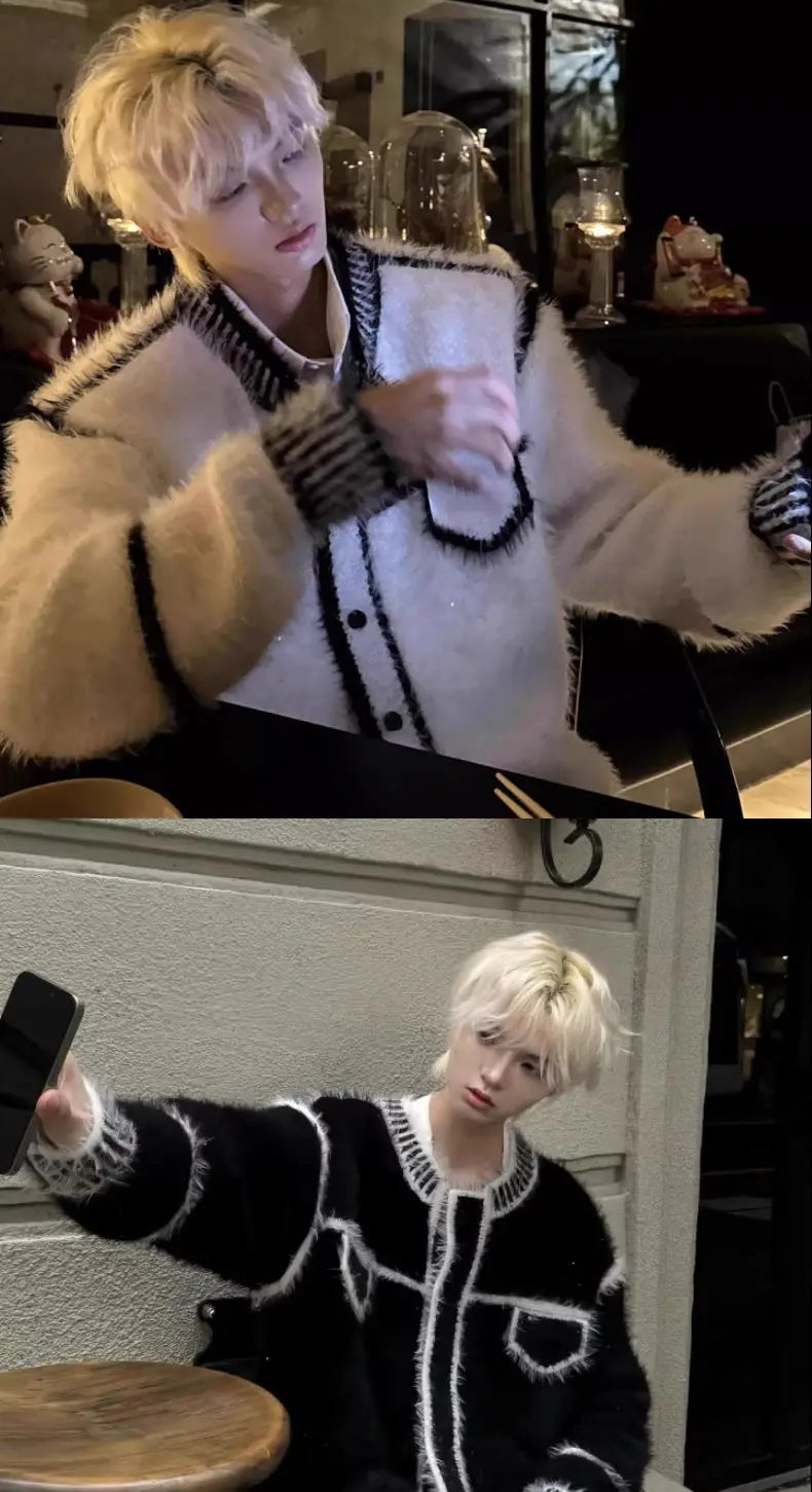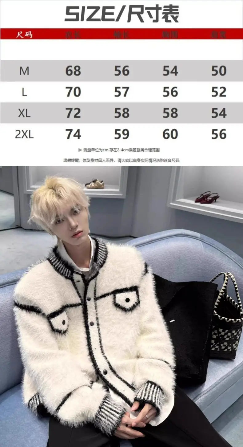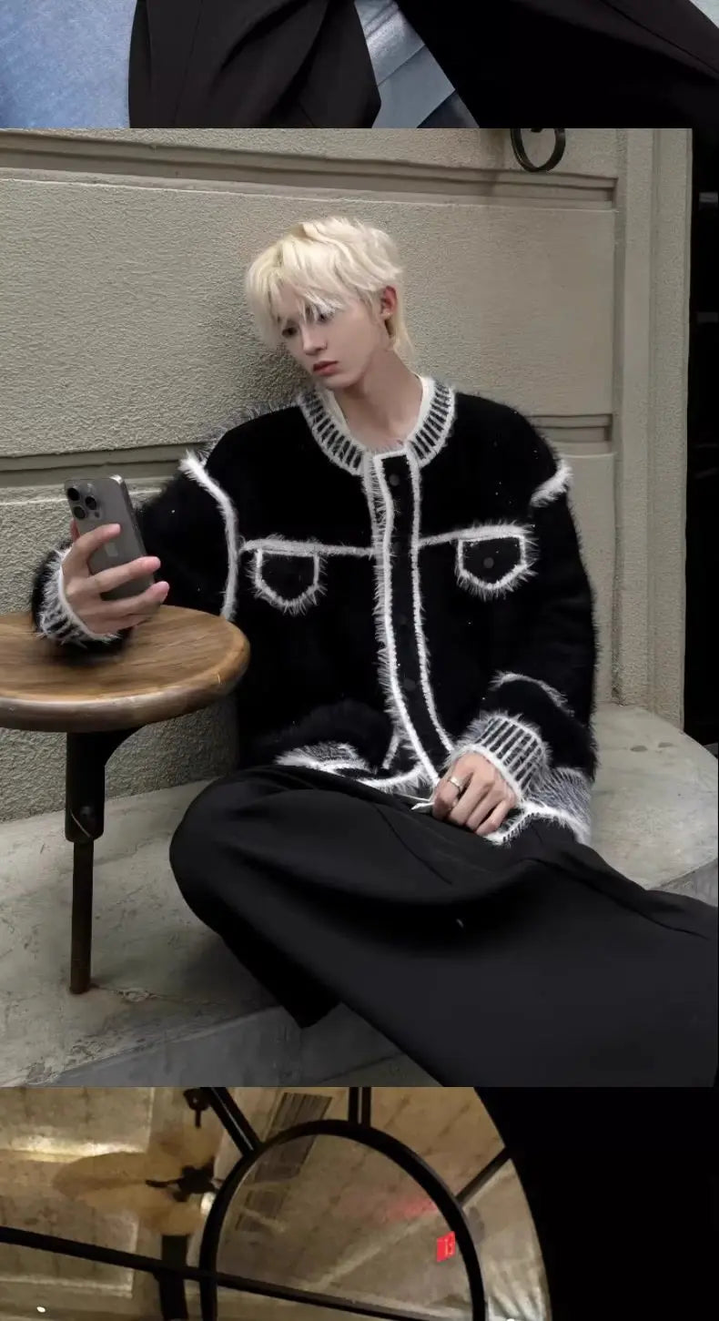 Threebooy American Punk Sweater Imitation Mink Velvet Cardigan Sweater Autumn Winter New Contrast Color High-end Versatile Knitted Jacket