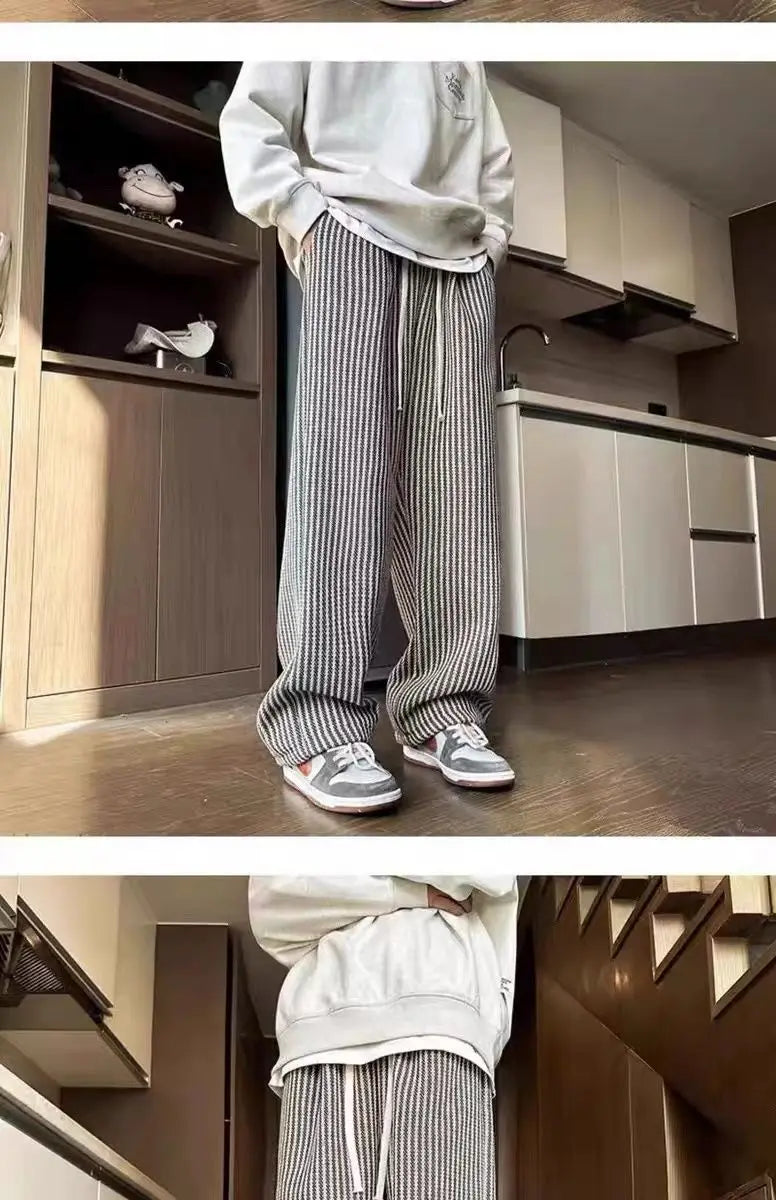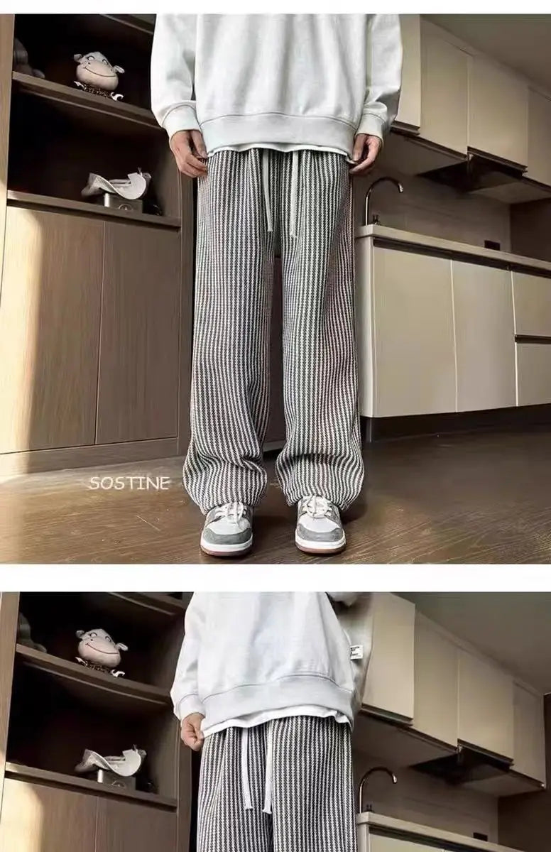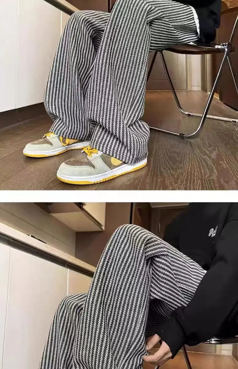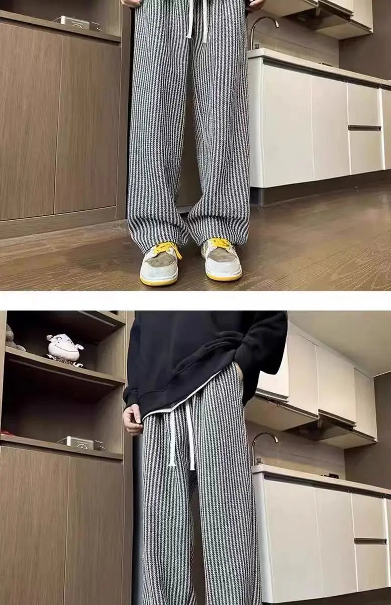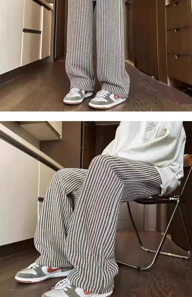 Threebooy American retro black vertical striped casual pants for men and women trend lazy loose drawstring straight leg wide leg pants y2k