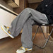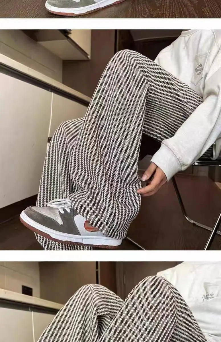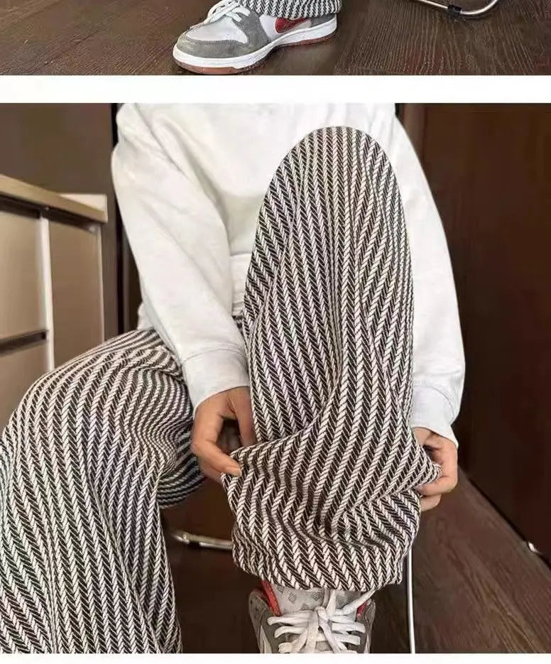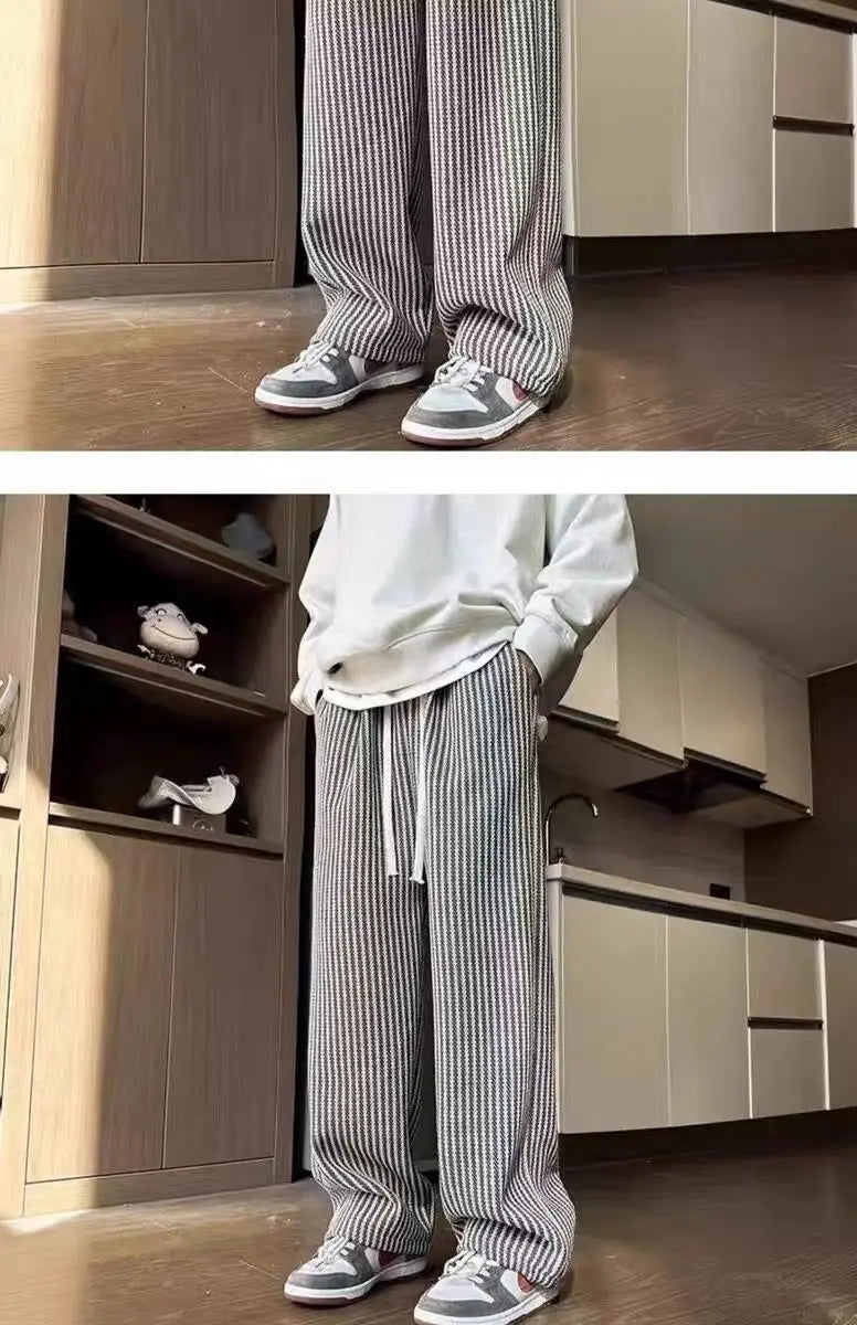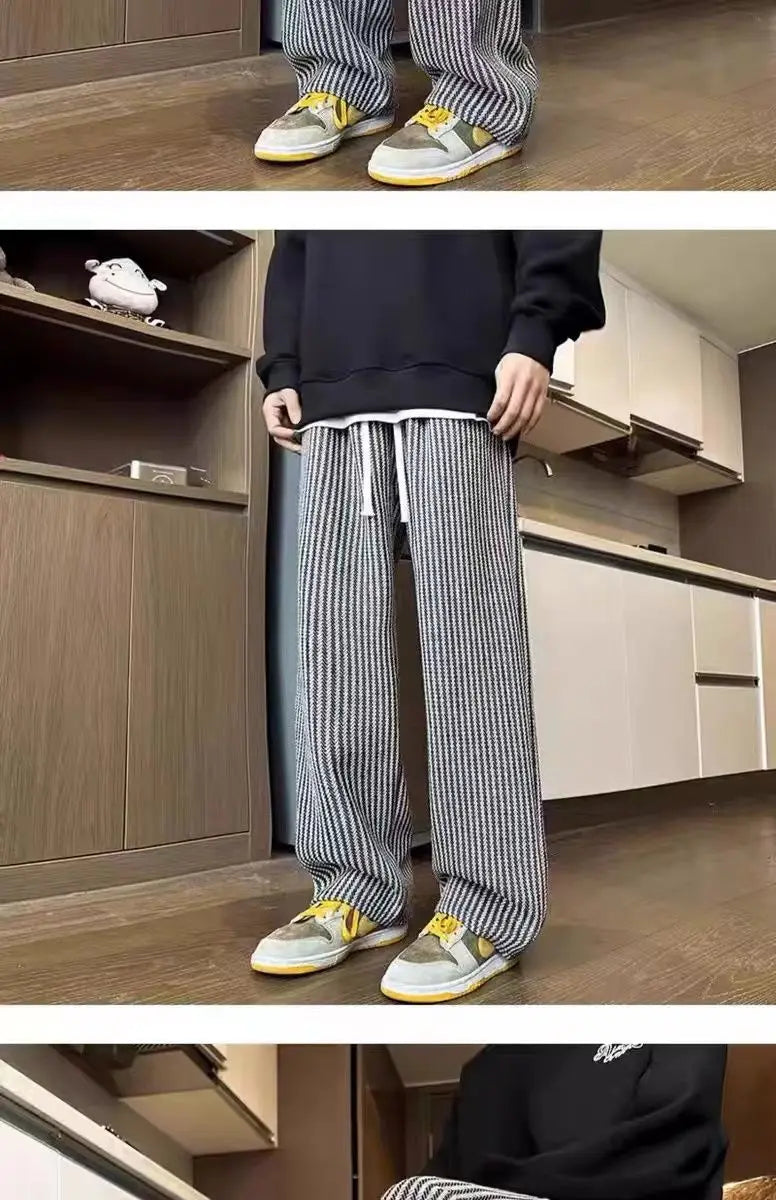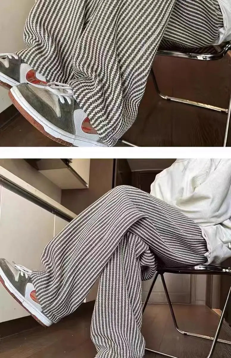 Threebooy American retro black vertical striped casual pants for men and women trend lazy loose drawstring straight leg wide leg pants y2k