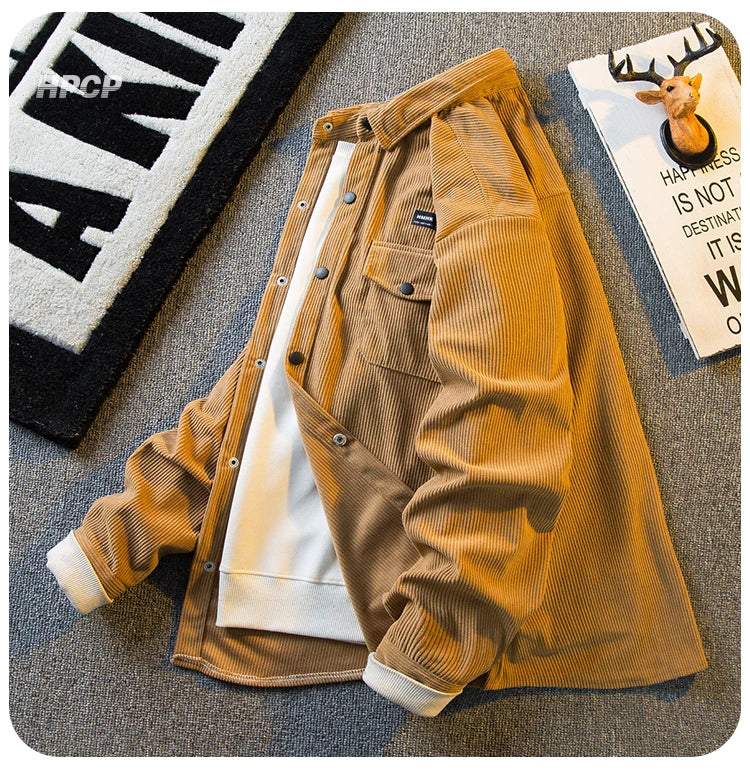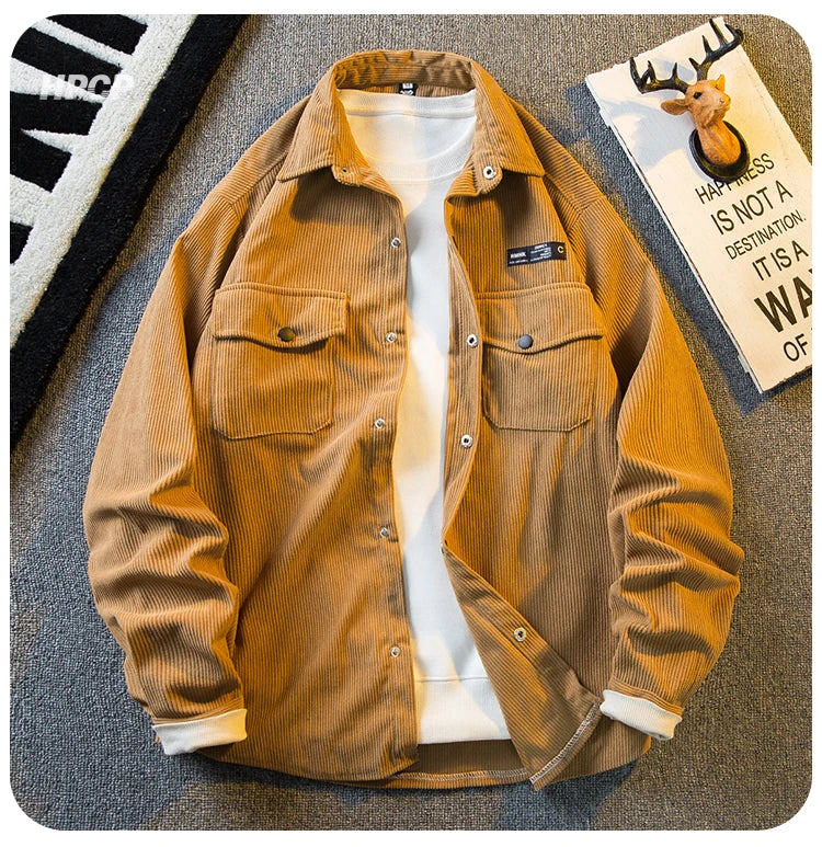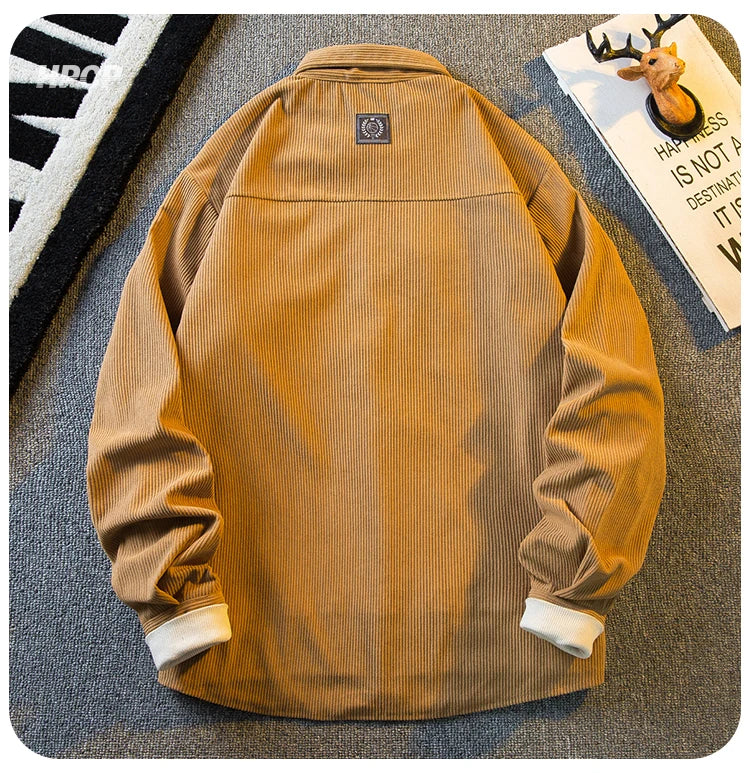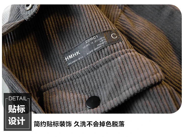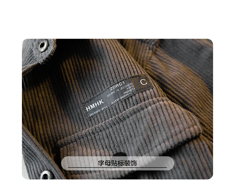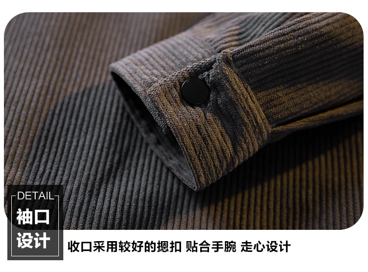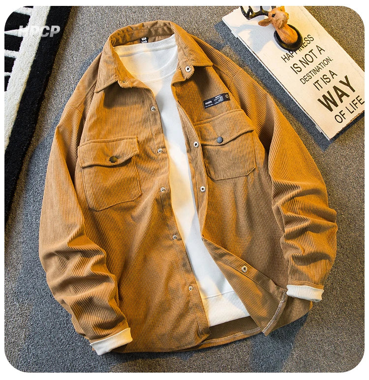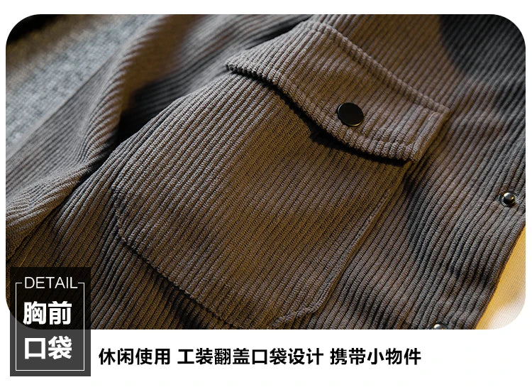 Threebooy American Retro Corduroy Shirt Men's Long-sleeved Korean Version 2025 Spring Autumn New Men's Trendy Workwear Jacket Shirt Jacket
