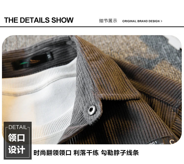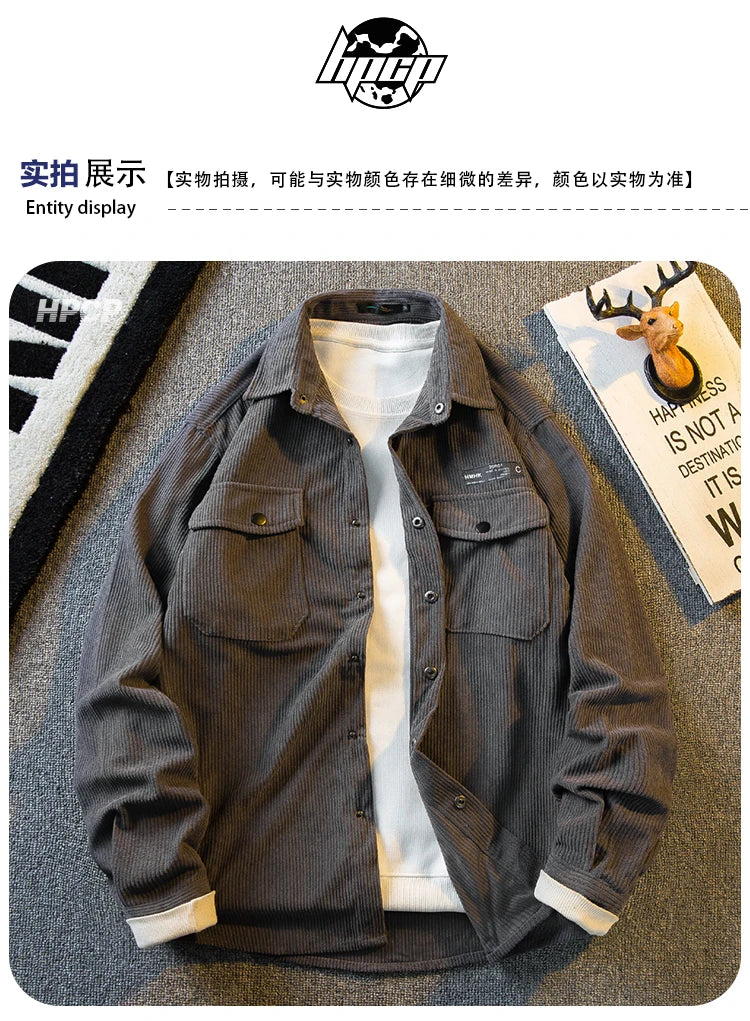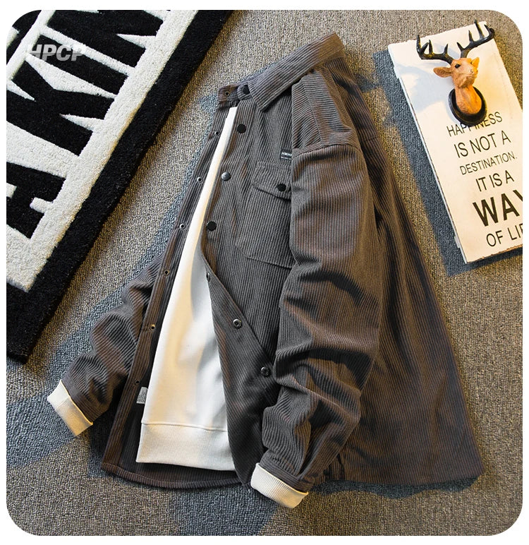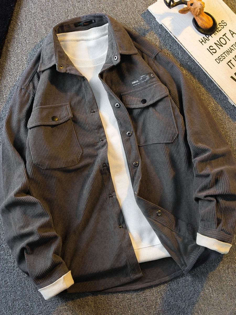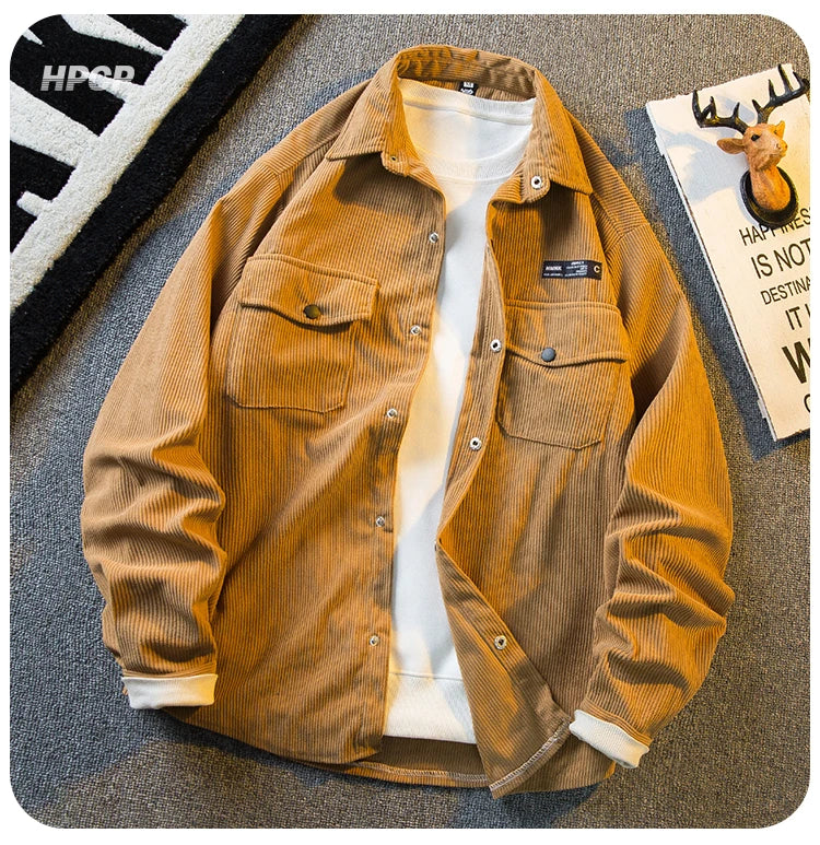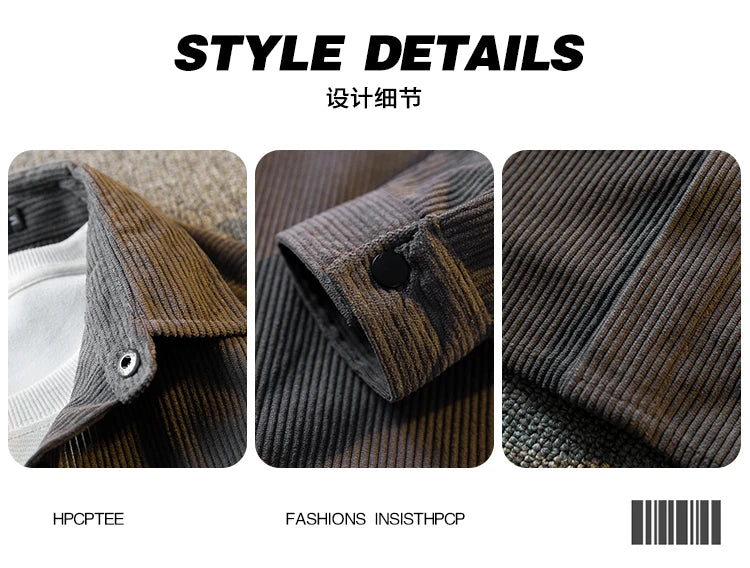 Threebooy American Retro Corduroy Shirt Men's Long-sleeved Korean Version 2025 Spring Autumn New Men's Trendy Workwear Jacket Shirt Jacket