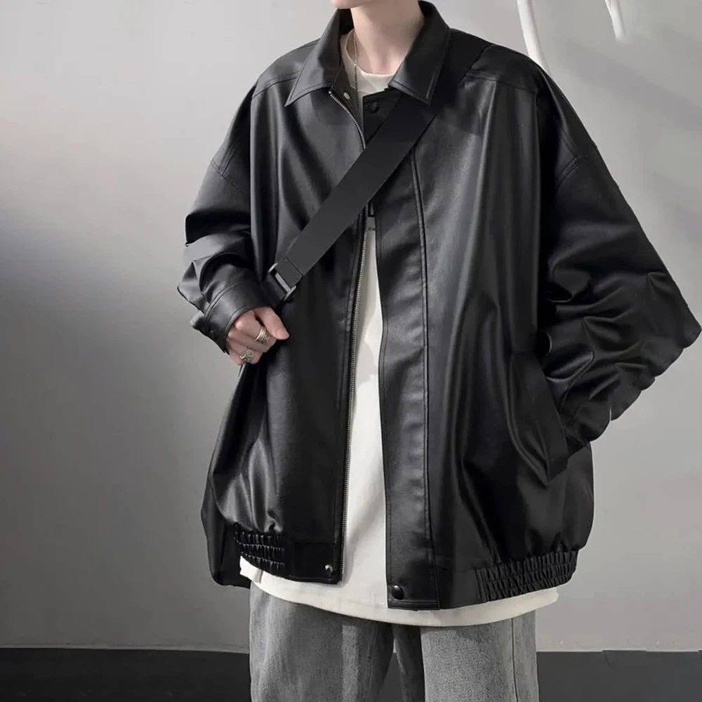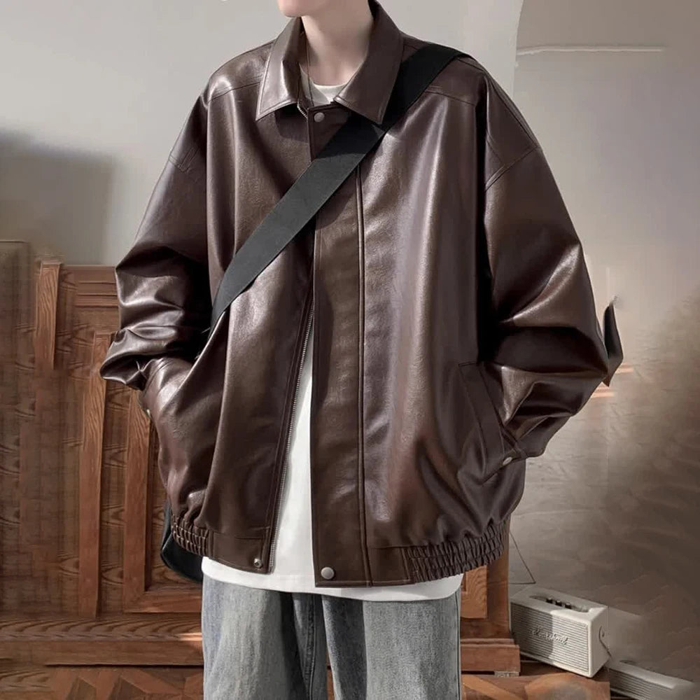 Threebooy American Retro Leather Jacket Men'S Autumn And Winter Plus Velvet High Quality Handsome Casual Loose Pu Leather Lapel Jacket Men