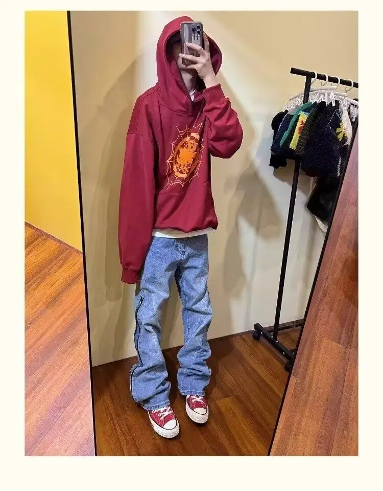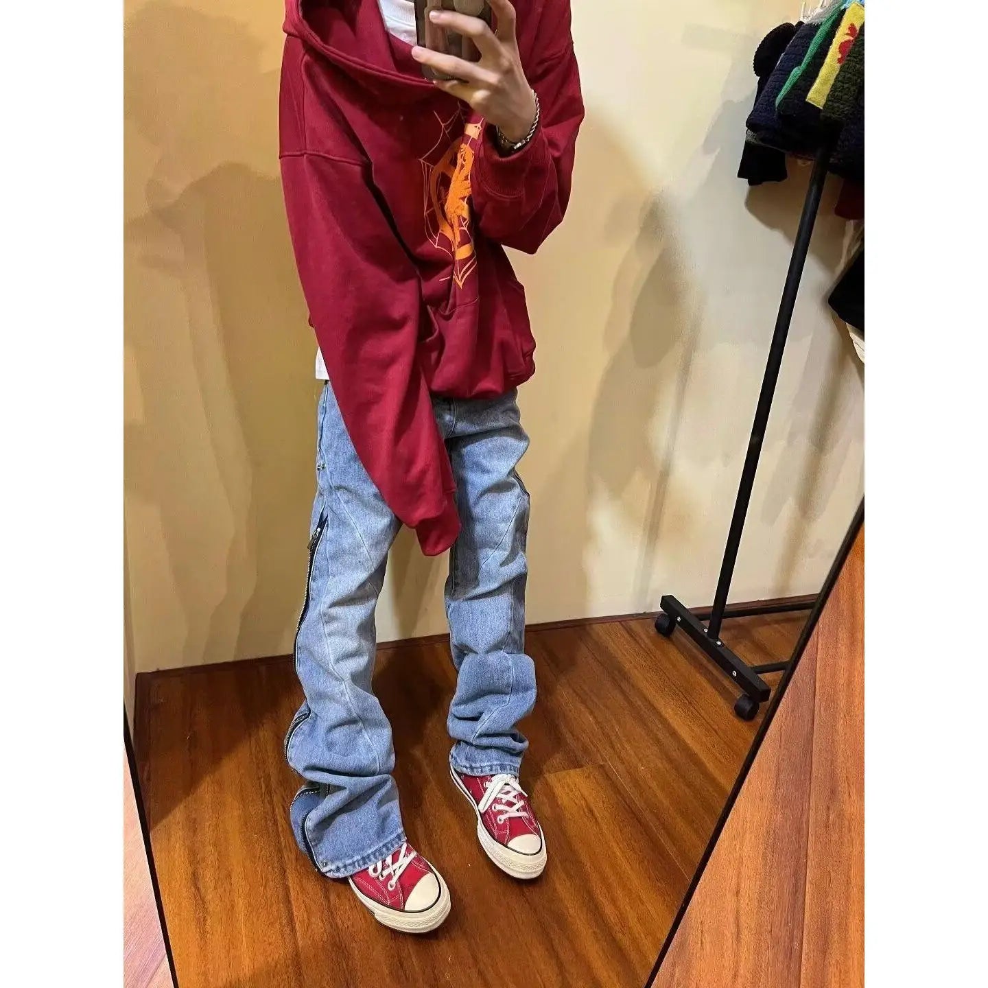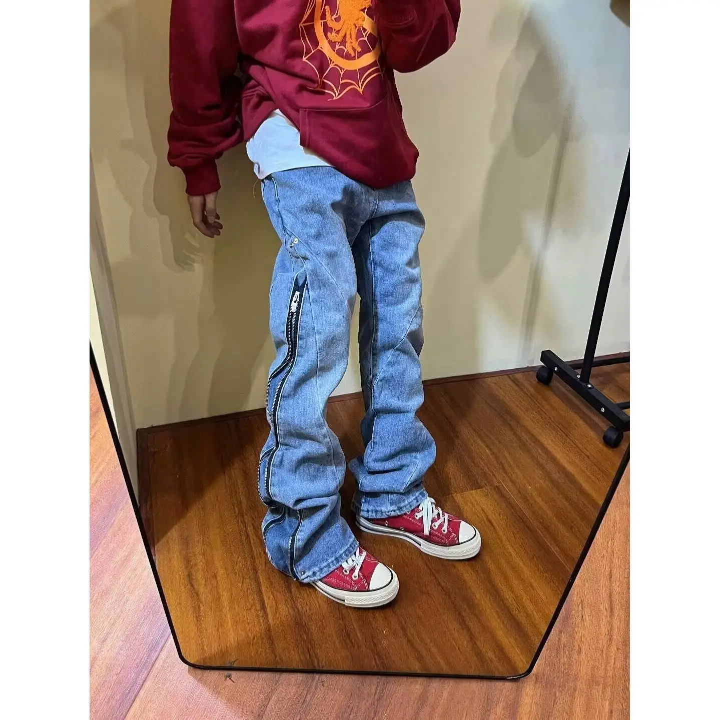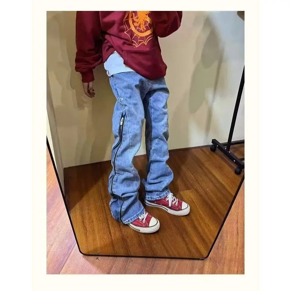 Threebooy American Spring and Autumn Street Men and Women Trendy Zipper Design Straight Tube Washed Jeans Couple Retro Casual Pants y2k