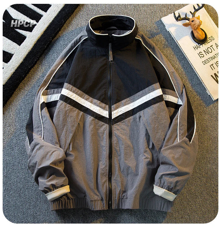 Threebooy American Stand-up Collar Color-blocked Workwear Jacket Men Spring Autumn Trendy Sun Protection Stitching Mountaineering Jacket