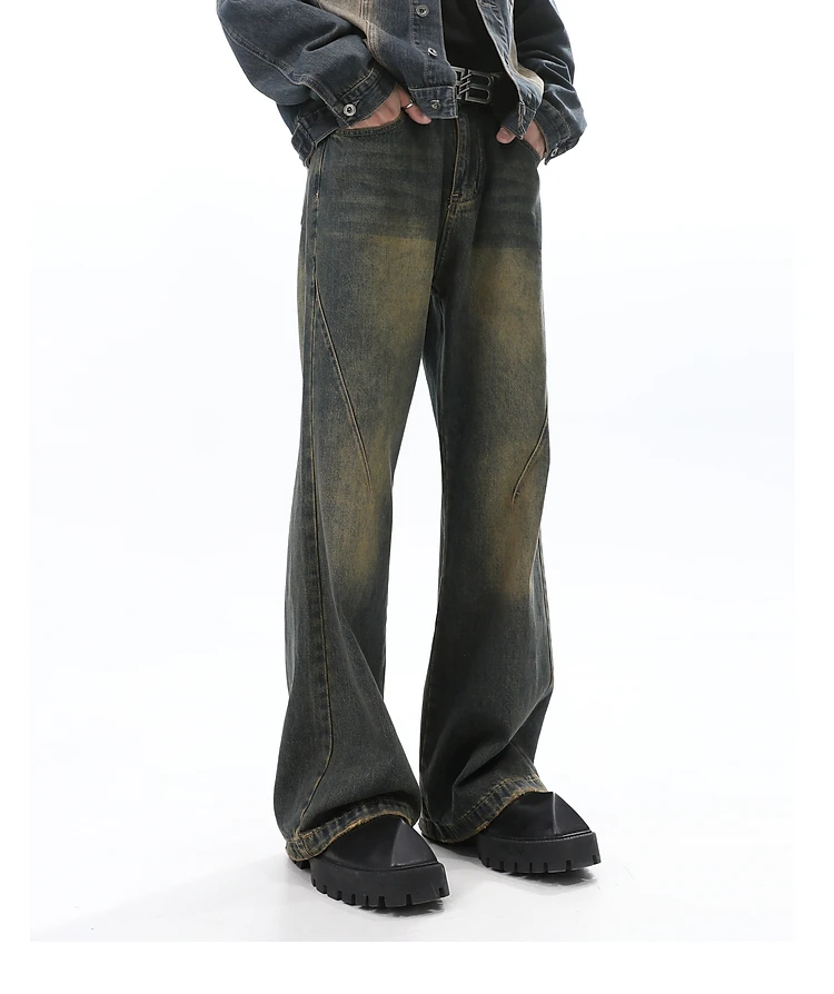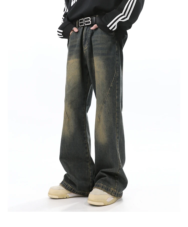 Threebooy American style vintage washed denim jeans men's autumn fashion high street casual versatile straight leg long pants