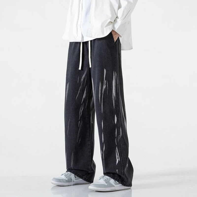 Threebooy American tie dye washed denim jeans men's spring and autumn new style loose straight tube versatile wide leg
