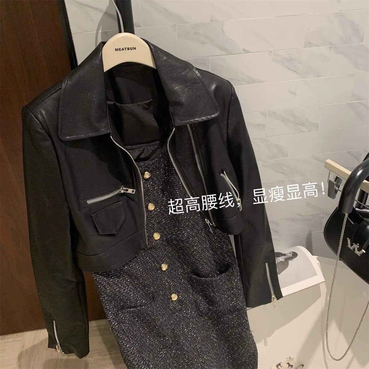 Threebooy American Trendy Motorcycle Suit Slim Short Jacket Double Zipper Washing PU Leather Jacket High Street Versatile Leather Jacket