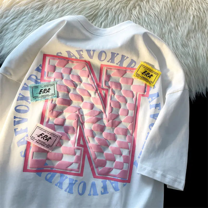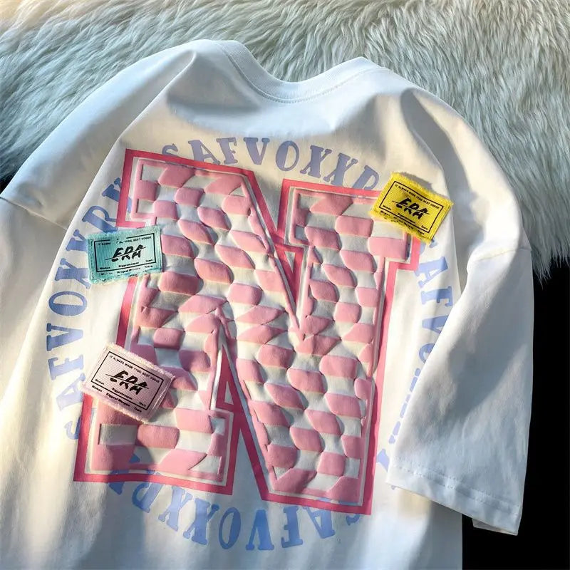 Threebooy American Trendy Sweet Cool Hot Girl Couple Outfits Loose Versatile Lazy Retro Cotton Short-sleeved T-shirt Men Women Aesthetic
