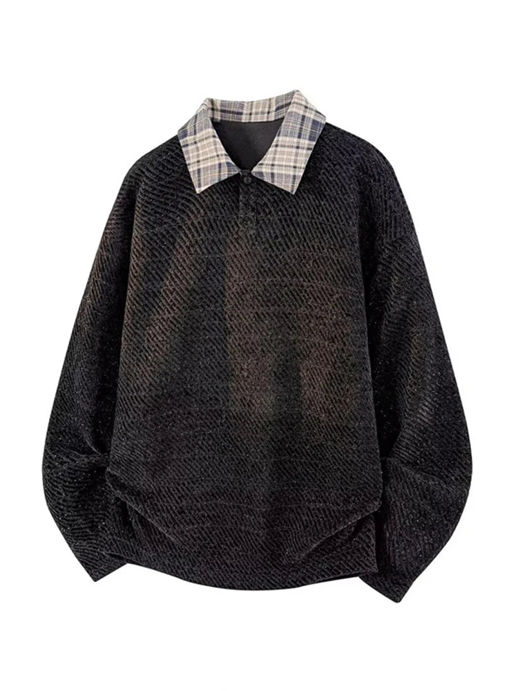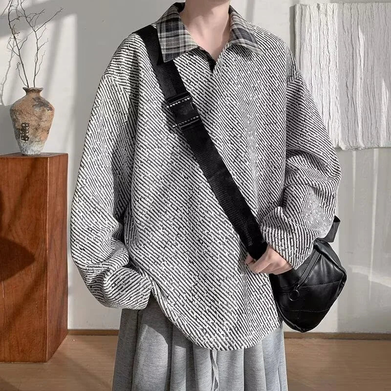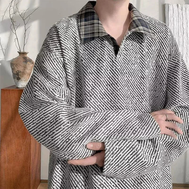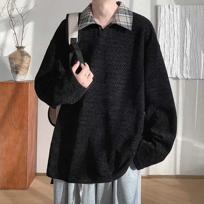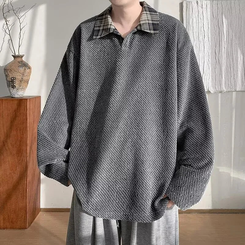 Threebooy Autumn American Retro Textured Sweatshirts For Man High Street Fashion Long Sleeve Polo T-shirts Casual Y2K Pullover Hoodie
