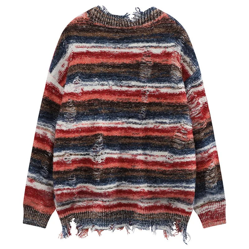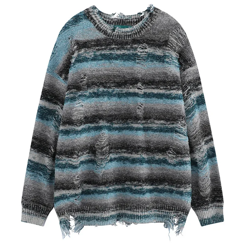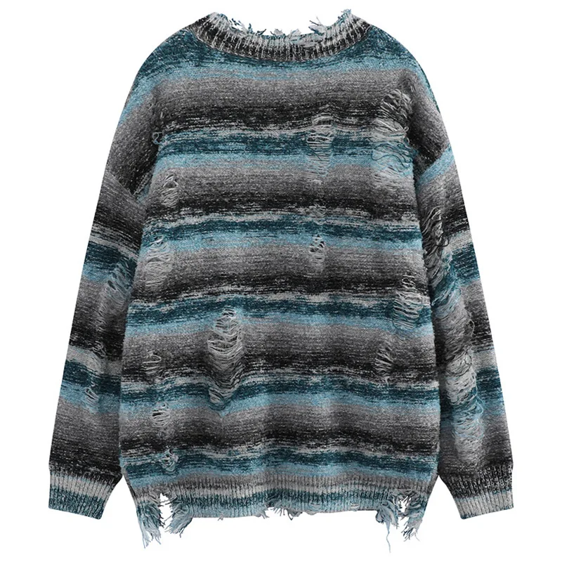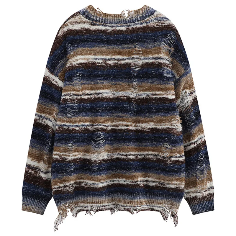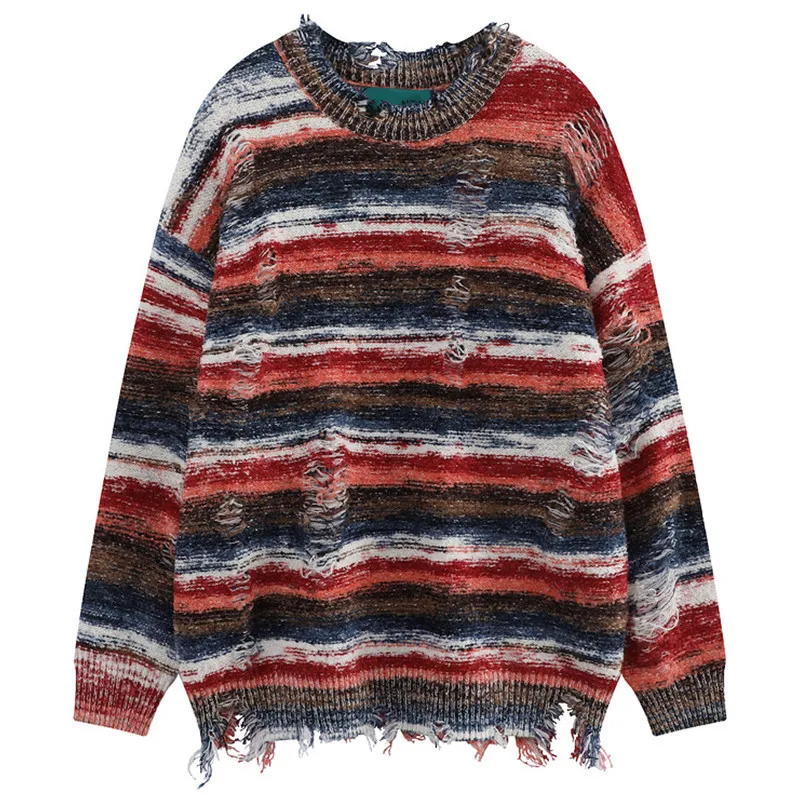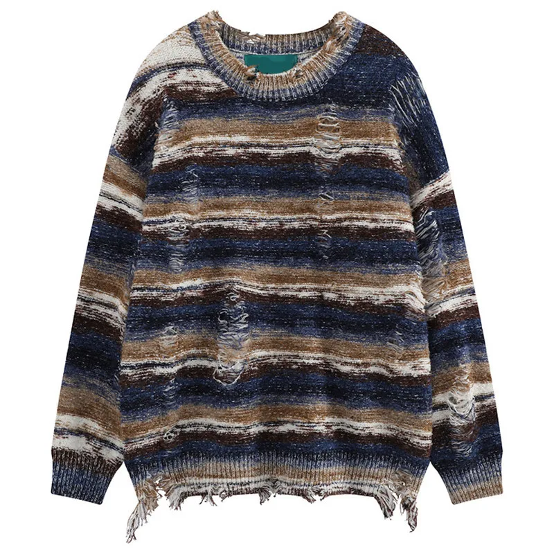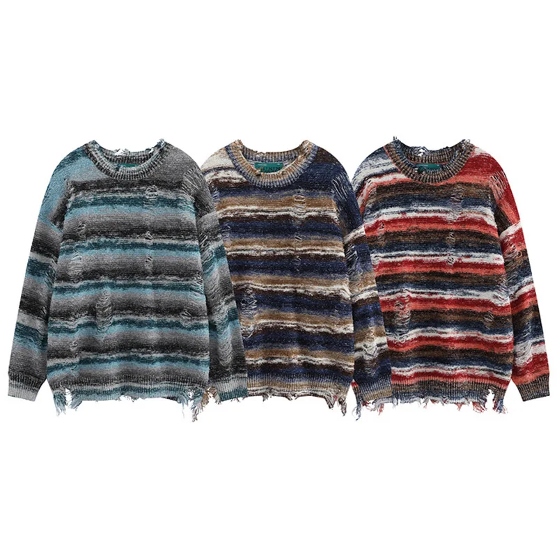 Threebooy Autumn Clothing Men's Casual Hip Pop Knitted Printed Ripped Pullover Light Luxury Vintage Loose O Neck Long Sleeve Sweater