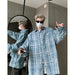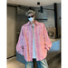 Threebooy Autumn Fashion Men Women Plaid Shirts Oversize Button Up Long Sleeve Tops Korean Loose Casual Outwear Couples Shirt Pink/Blue