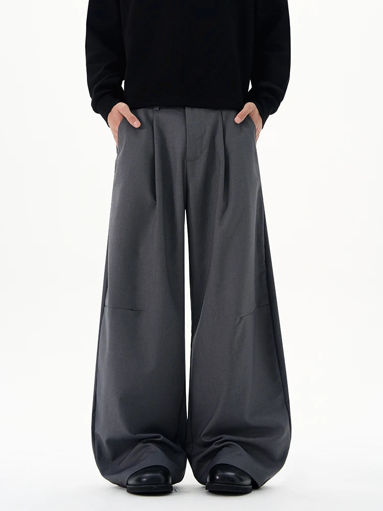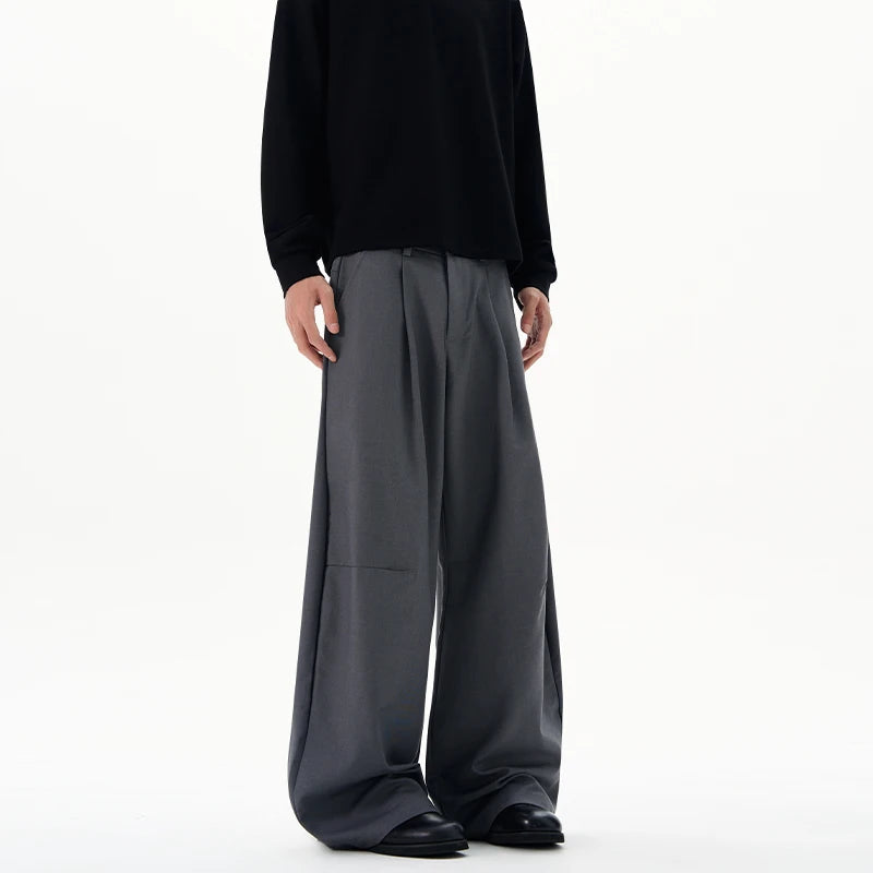 Threebooy Autumn Men's Loose Suit Pants Commuting Business Casual Classic Gray Black Wide Legs Trousers Oversized Simple Style Clothes