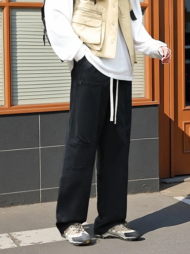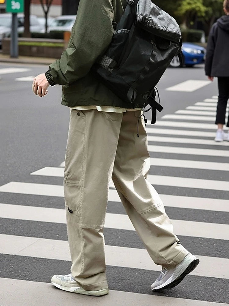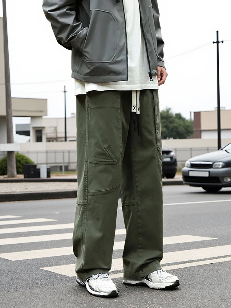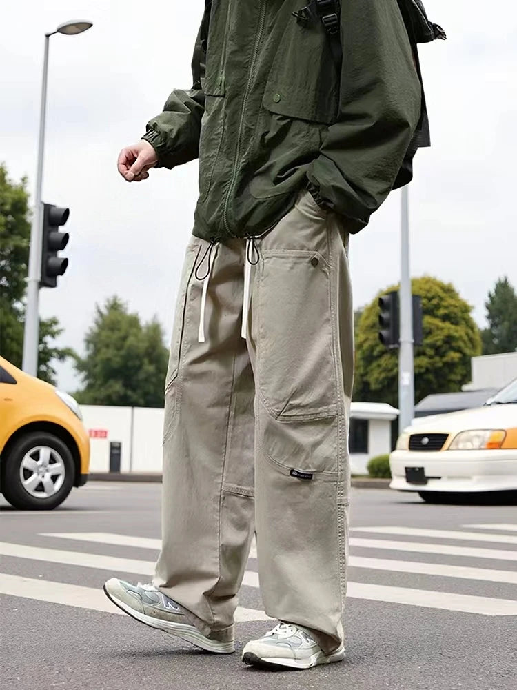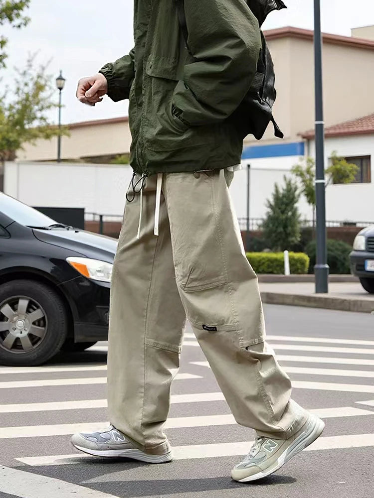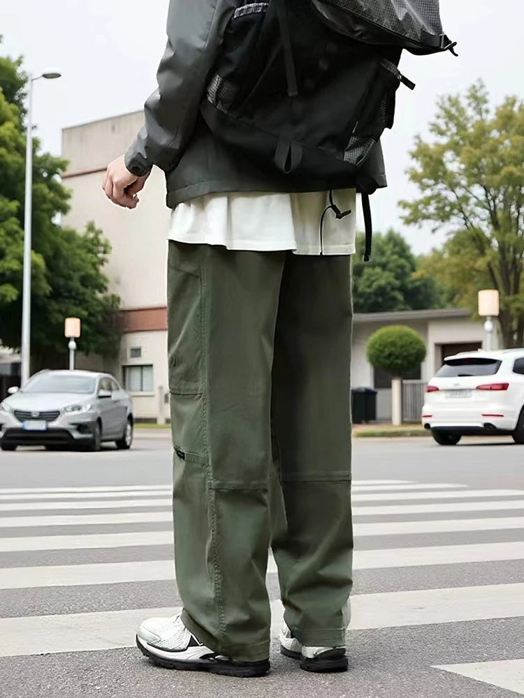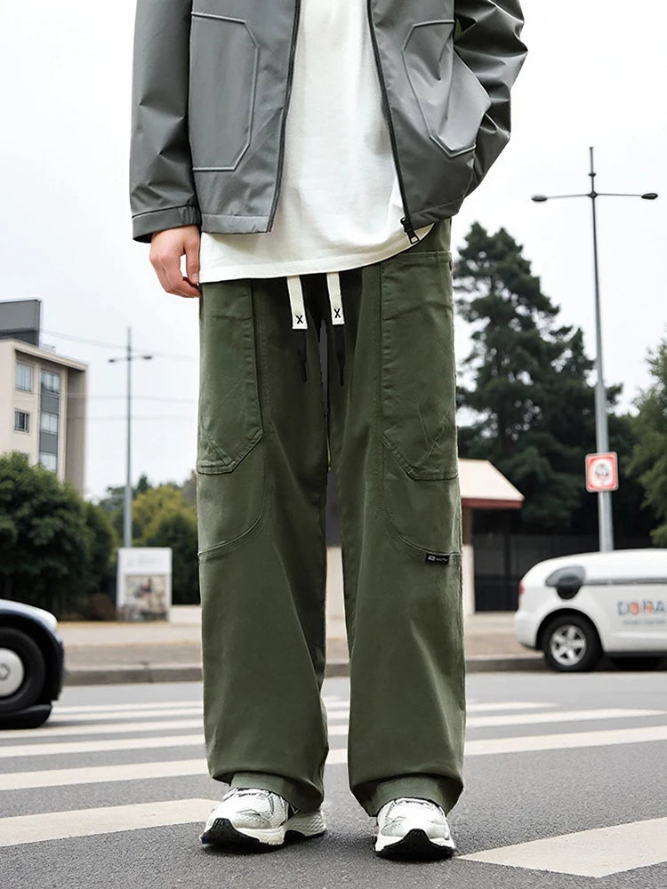 Threebooy Autumn New Cargo Pants Men with 5 Pockets 100% Cotton Workwear Wide Leg Baggy Pants Casual Straight Trousers Plus Size 8XL