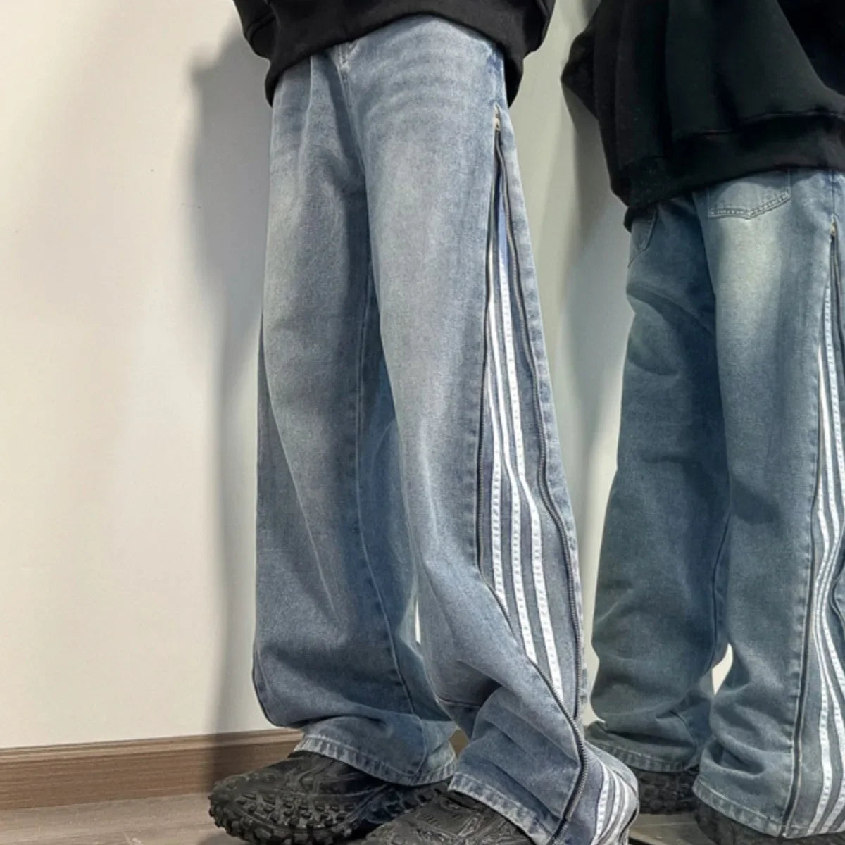 Threebooy Autumn New Men's Jeans Loose Fit Straight Leg Casual Trousers American Style Trendy Branded Streetwear Fashion